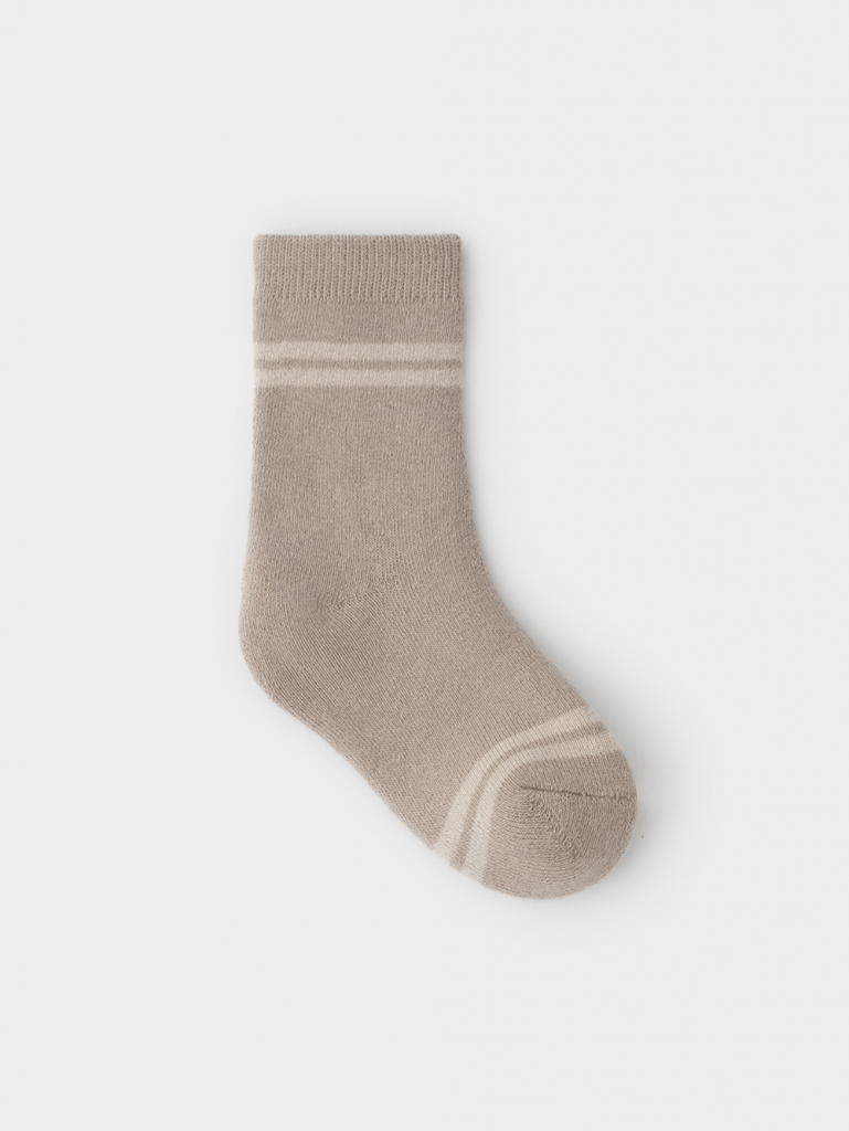 Носки махровые с формованной пяткой и эластичной резинкой по краю. Украшены рисунком в полоску. Изделие сохраняет форму и стойкий цвет после многочисленных стирок.
