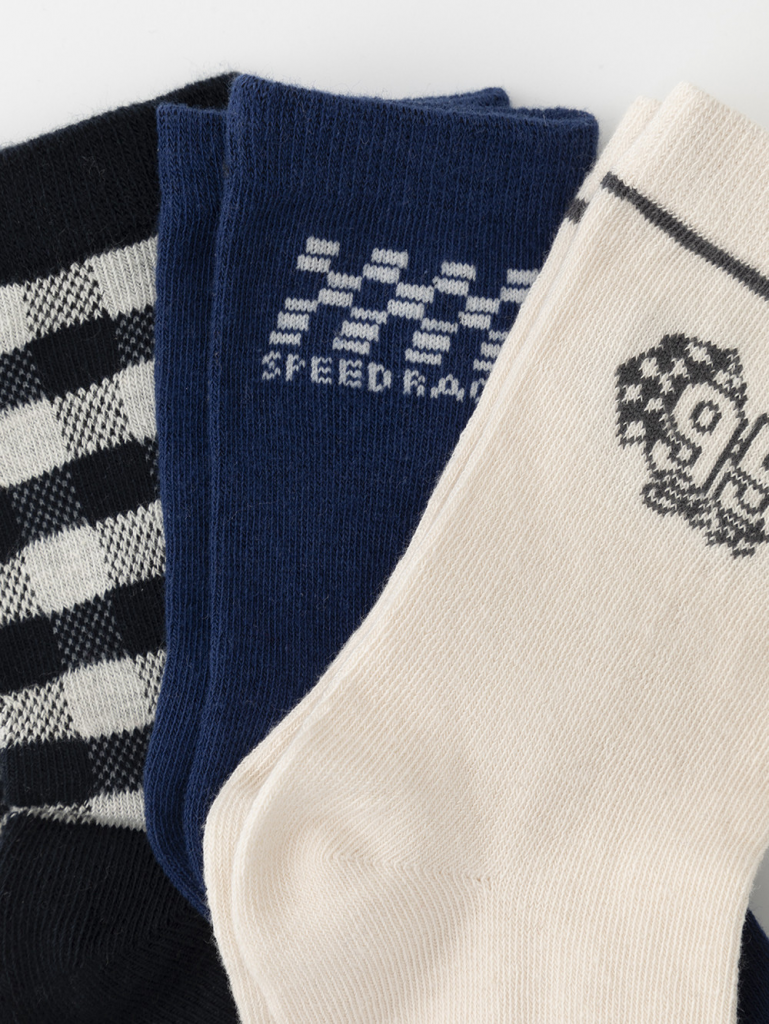 Носки с формованной пяткой и эластичной резинкой по краю. Украшены рисунком. В комплекте 3 пары. Изделия сохраняют форму и стойкий цвет после многочисленных стирок.