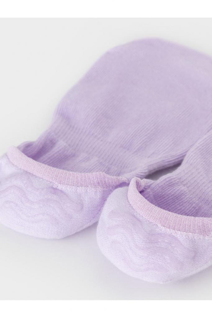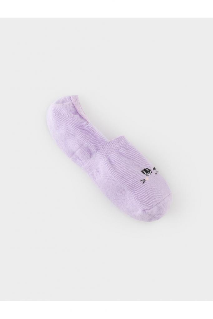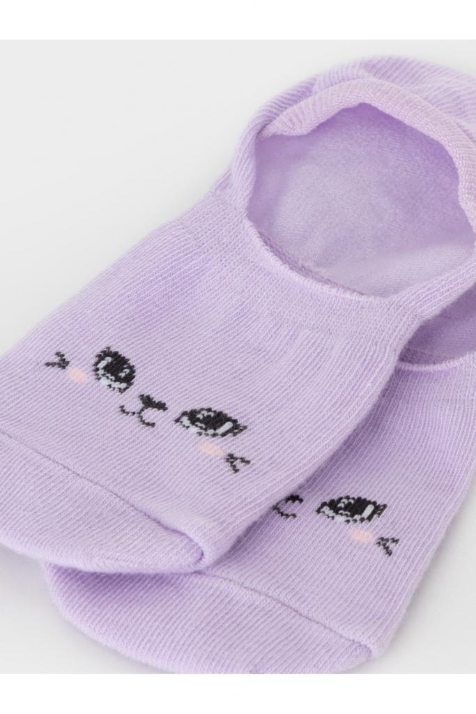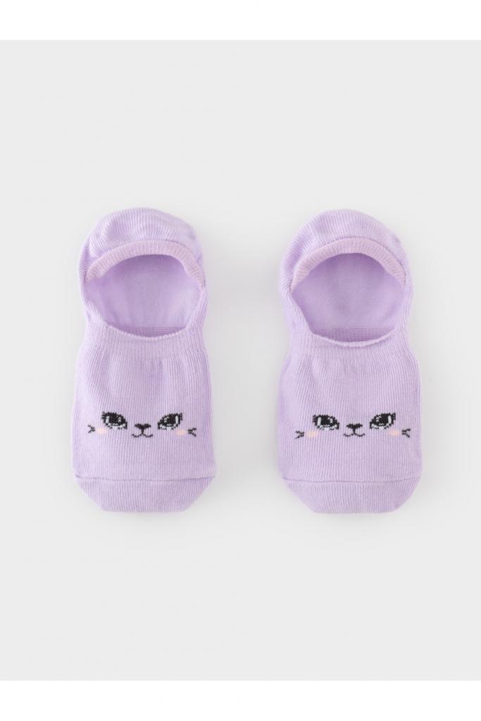 Короткие носки-следки для девочки. Эластичная резинка по краю. Украшены рисунком с мордочкой.