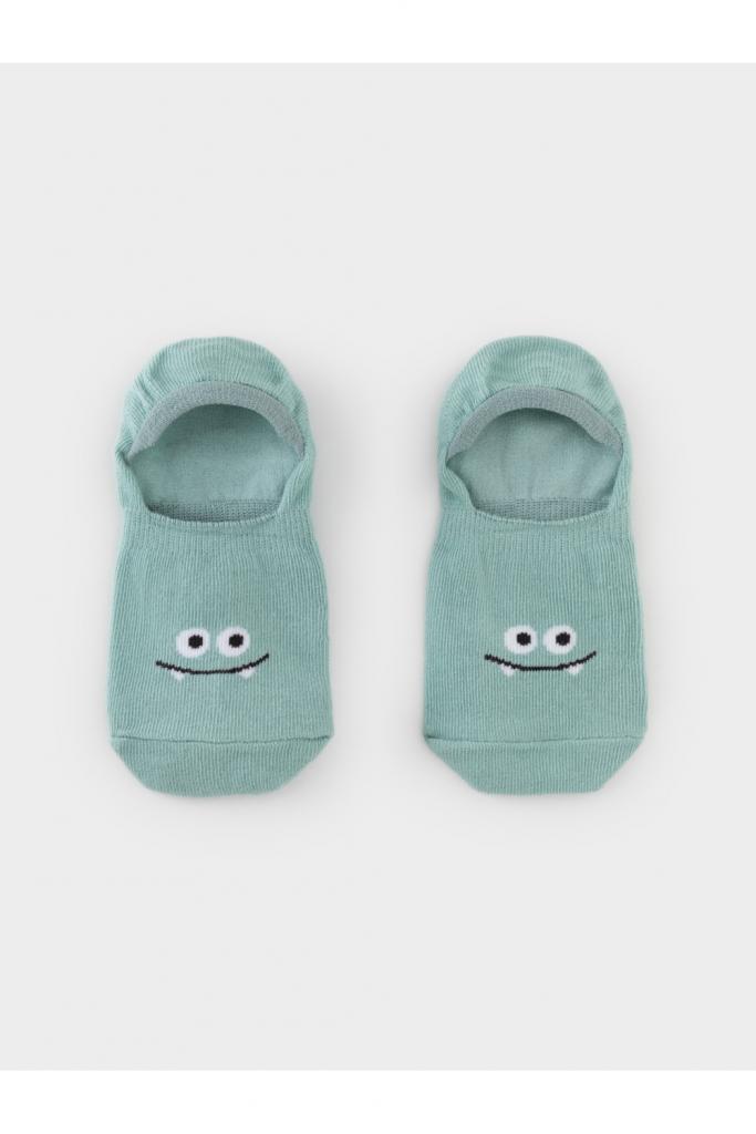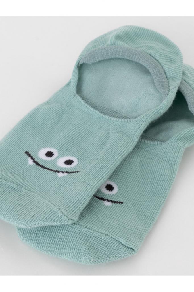 Короткие носки-следки для мальчика. Эластичная резинка по краю. Украшены рисунком с забавной мордочкой.