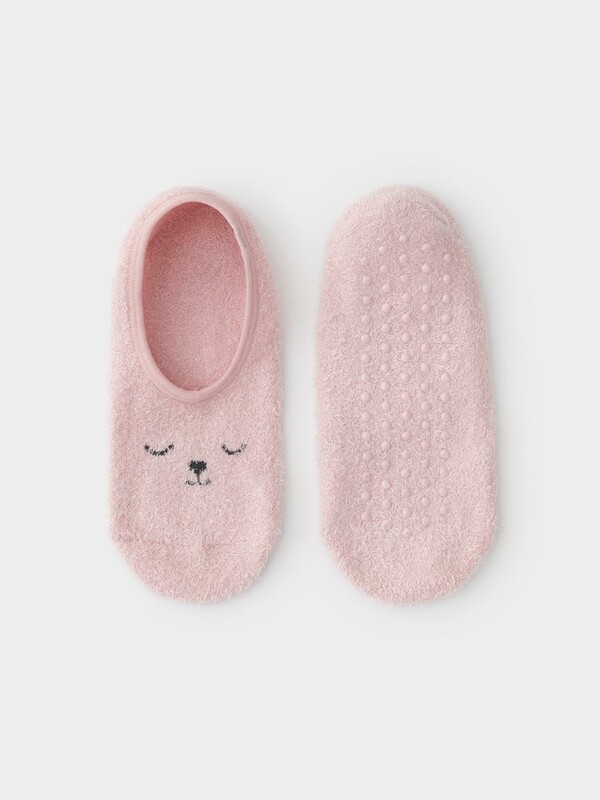 Тёплые следки для девочки с формованной пяткой и эластичной резинкой по краю. На подошве резиновые стопперы. Украшены рисунком. Изделие сохраняет форму и стойкий цвет после многочисленных стирок.