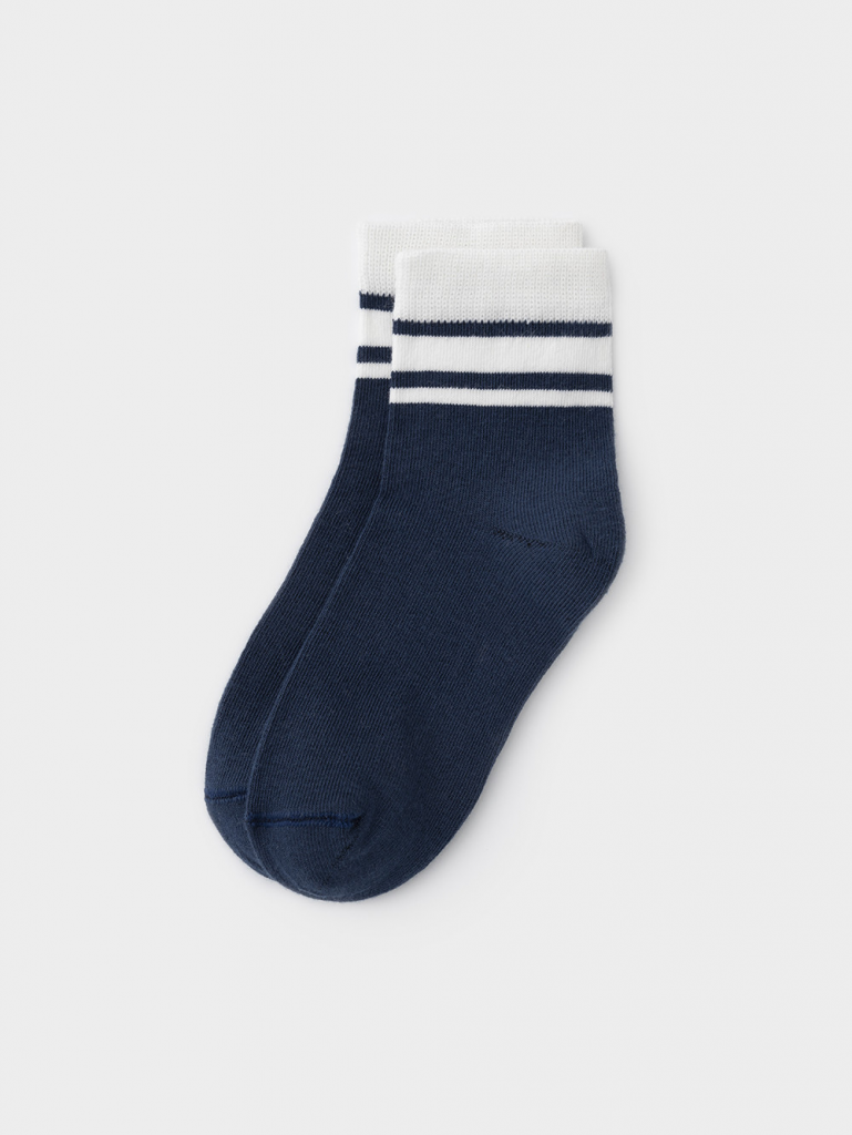 Носки длинные детские с формованной пяткой и эластичной резинкой по краю. Украшены рисунком в полоску. Изделие сохраняет форму и стойкий цвет после многочисленных стирок.