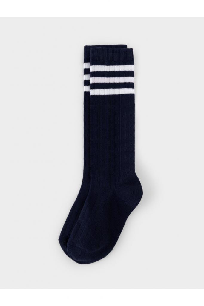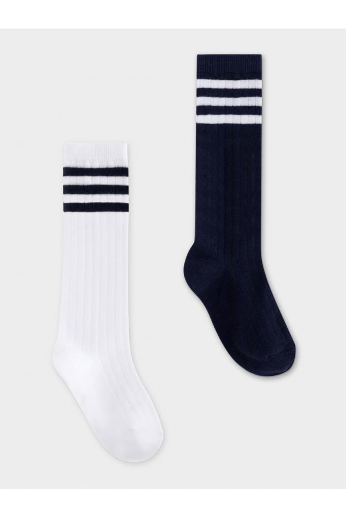 Гольфы для девочки с эластичной резинкой по верхнему краю. Украшены рисунком в полоску. В комплекте 2 пары.