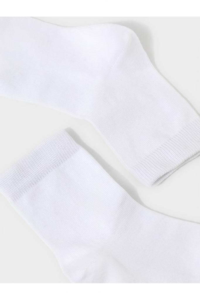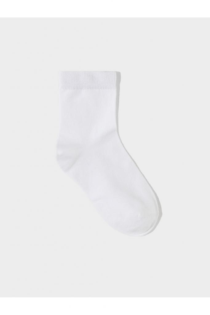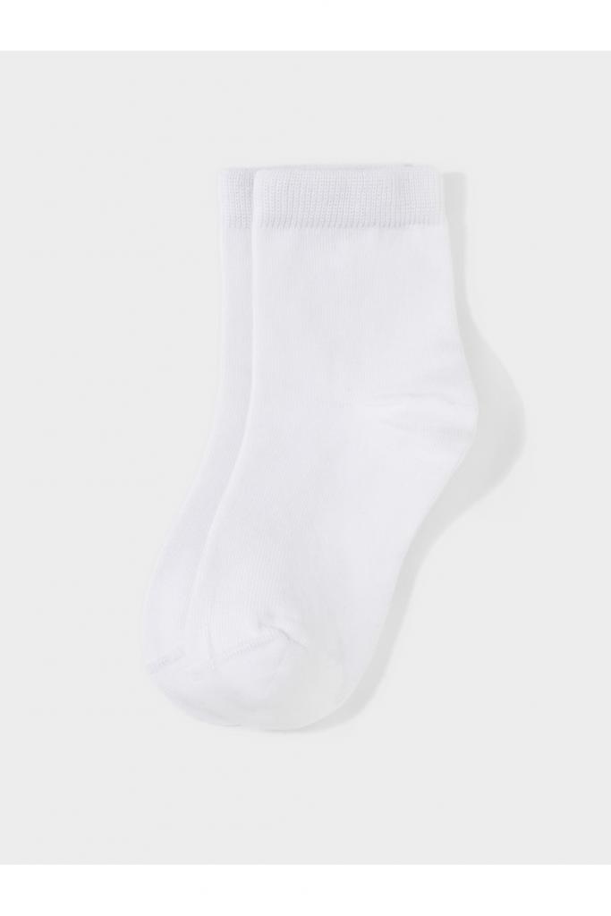 Белые трикотажные носки обычной длины с формованной пяткой. Эластичная резинка по верхнему краю.