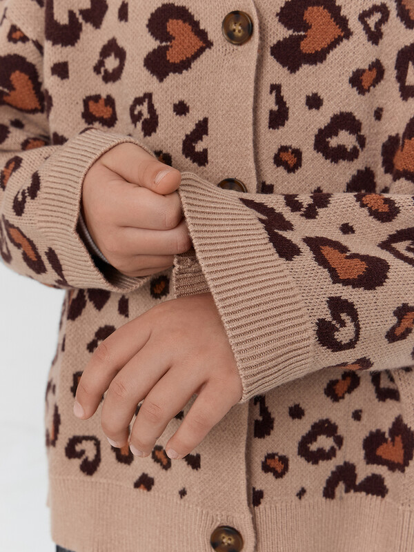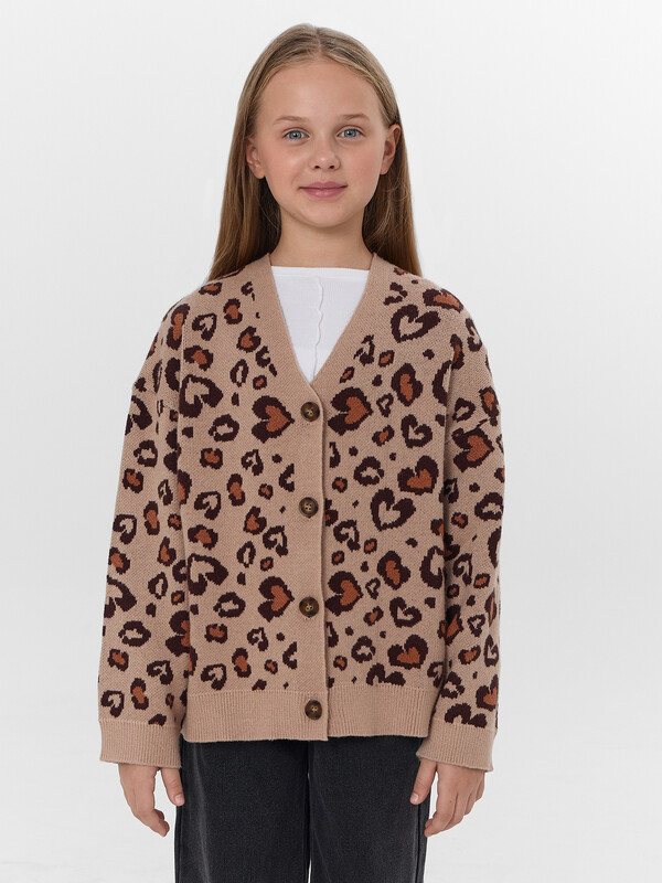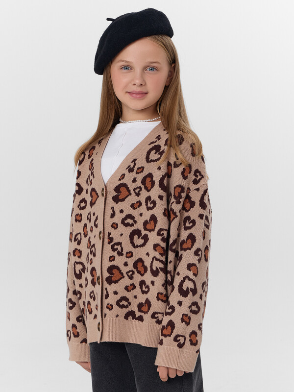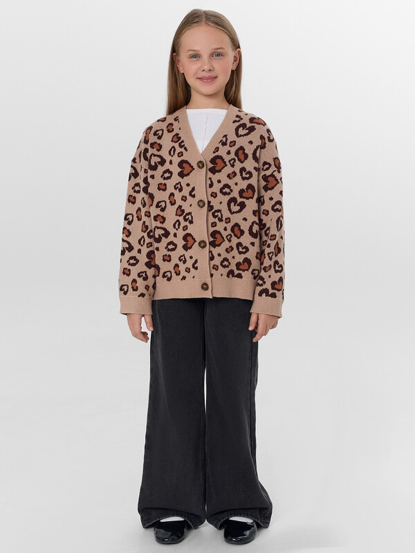 Яркий кардиган с леопардовым принтом дополнит гардероб маленькой модницы. Эффектный принт и удобный крой создают универсальный образ для школы, прогулок и праздничных мероприятий.