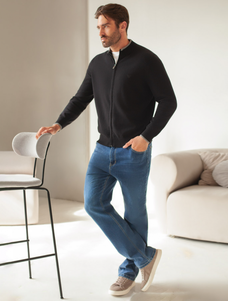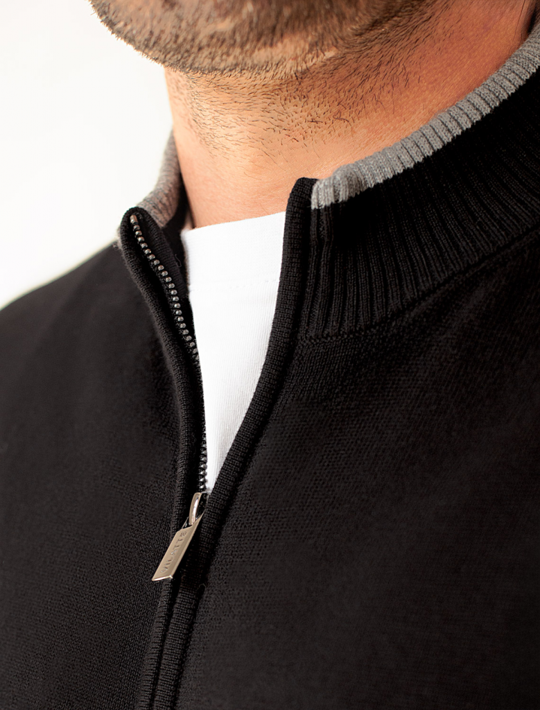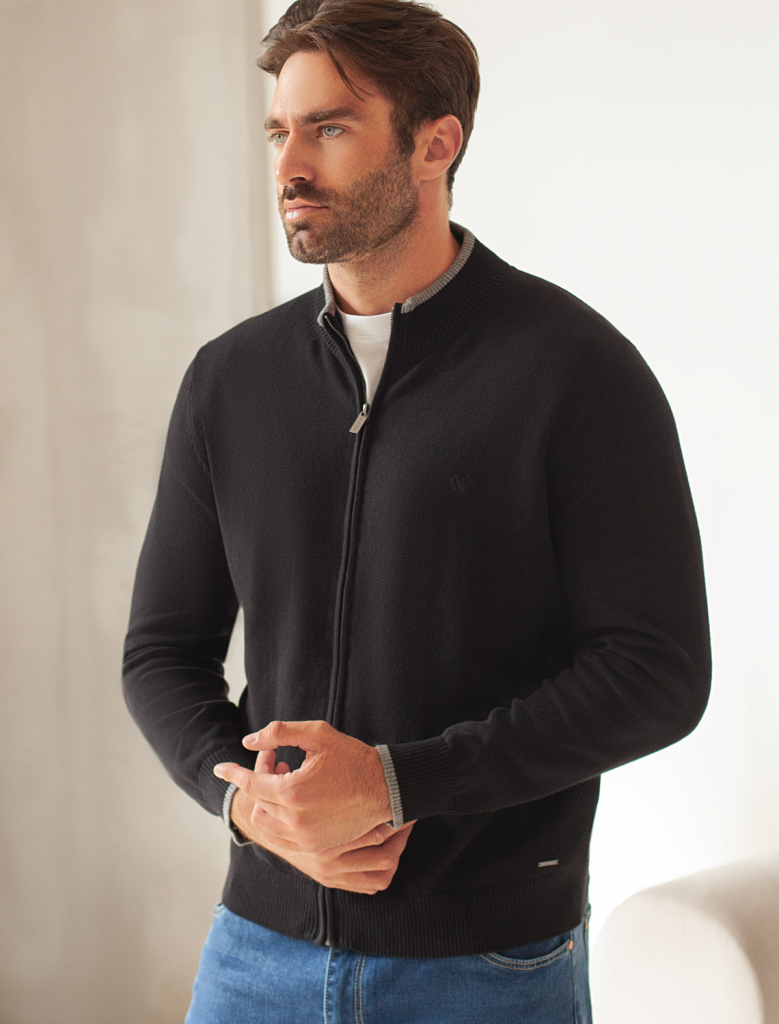 Кардиган на молнии выполнен из гладкой хлопковой пряжи с добавлением нейлона. Модель дополнена вышитым логотипом бренда и контрастными полосками на рукавах и на стойке. Фурнитура цвета темный никель. Изделие хорошо сохраняет тепло, не перегревая тело. Сочетается вторым слоем с футболками, рубашками и поло. Подходит для любого типа фигуры.