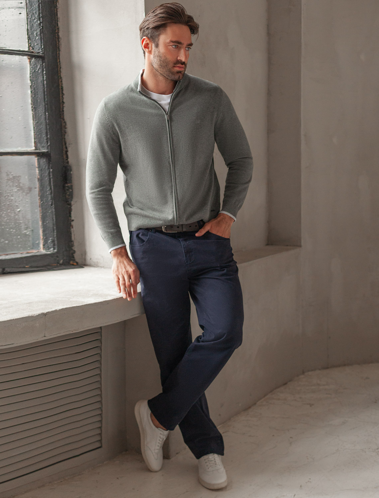 Кардиган на молнии выполнен из гладкой хлопковой пряжи с добавлением нейлона. Модель дополнена вышитым логотипом бренда и контрастными полосками на рукавах и на стойке. Фурнитура цвета темный никель. Изделие хорошо сохраняет тепло, не перегревая тело. Сочетается вторым слоем с футболками, рубашками и поло. Подходит для любого типа фигуры.