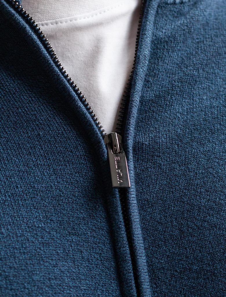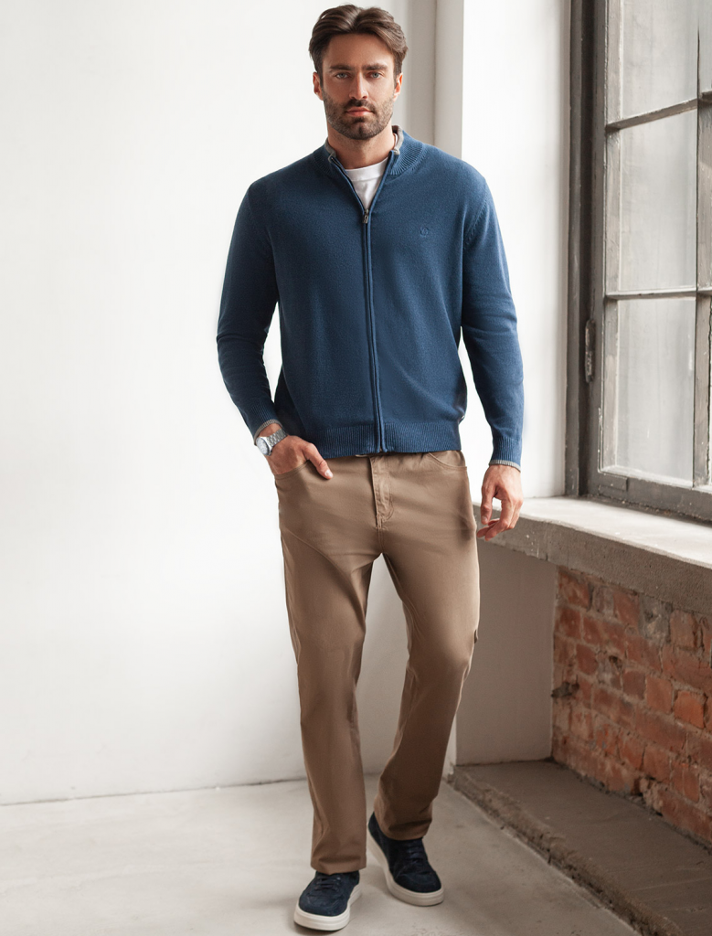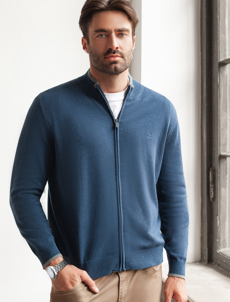 Кардиган на молнии выполнен из гладкой хлопковой пряжи с добавлением нейлона. Модель дополнена вышитым логотипом бренда и контрастными полосками на рукавах и на стойке. Фурнитура цвета темный никель. Изделие хорошо сохраняет тепло, не перегревая тело. Сочетается вторым слоем с футболками, рубашками и поло. Подходит для любого типа фигуры.