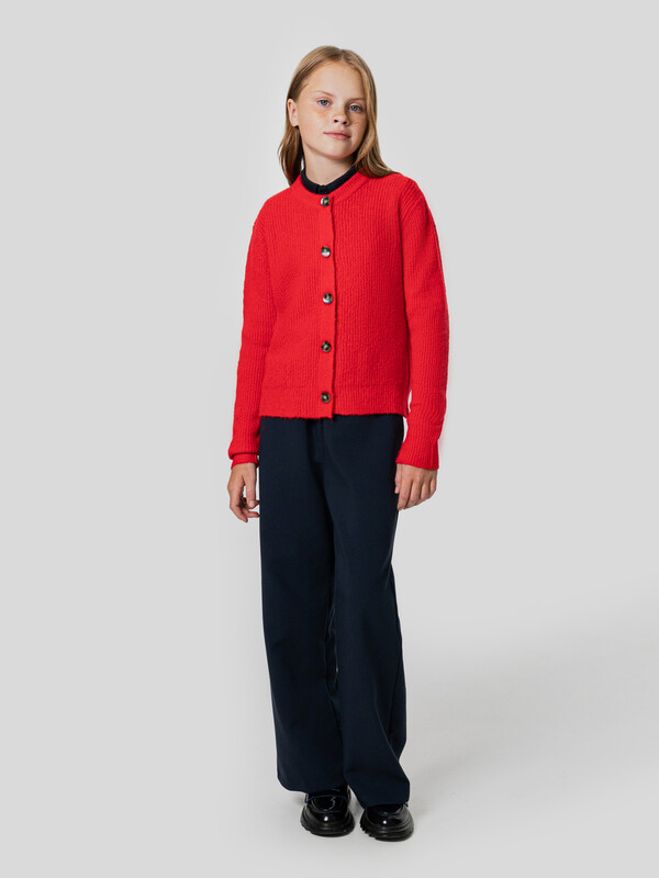 Кардиган для девочек — это уютная и стильная вещь, которая легко впишется в повседневный гардероб. Прямой крой на пуговицах делает модель универсальной: ее удобно надевать и сочетать с другими элементами одежды. Длинные рукава обеспечивают комфорт в прохладную погоду, а смесовая пряжа — удачное сочетание натуральных и синтетических волокон — отвечает за мягкость, тепло и устойчивость к износу. Такой кардиган подойдет как для школы, так и для прогулок, создавая образ, где тепло и стиль идут рука об руку.