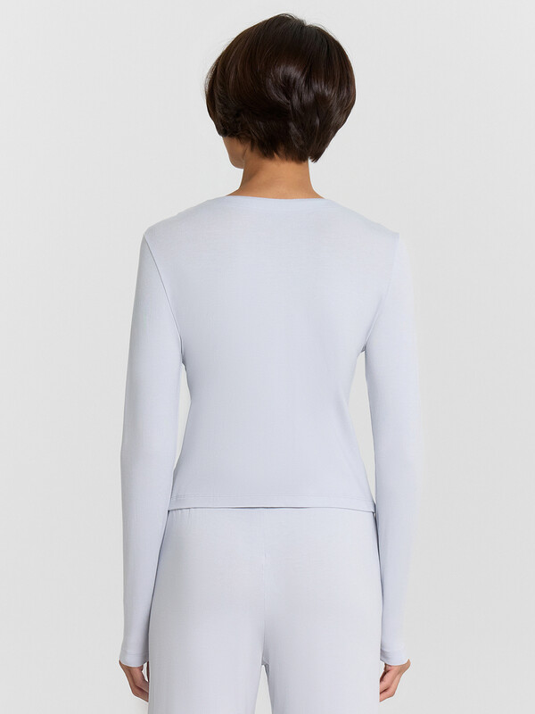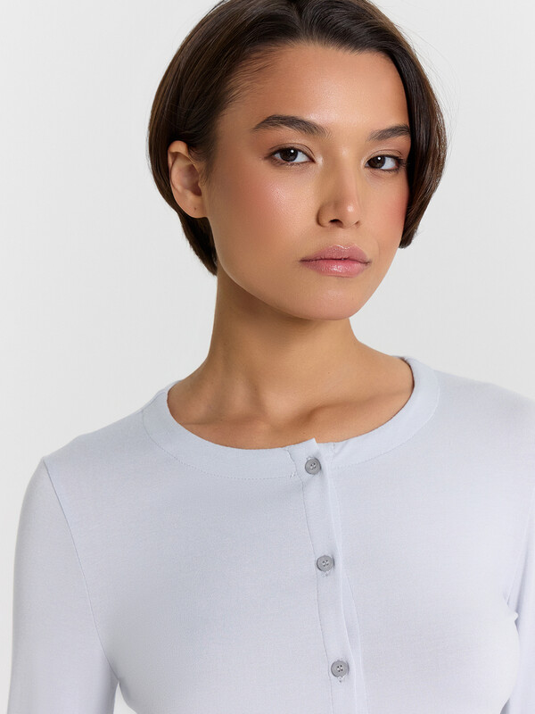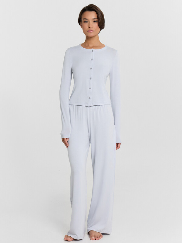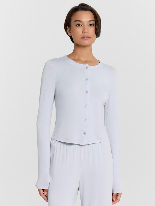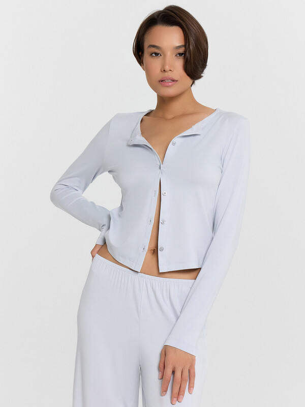 Женский домашний кардиган прилегающего силуэта из эластичной вискозы — это элегантная и универсальная модель, которая подчеркивает фигуру и дарит ощущение уюта. Округлая горловина придает образу мягкость, а длинные рукава делают кардиган подходящим для любого времени года. Центральная застежка на пуговицы с петлями добавляет классический акцент и позволяет регулировать степень открытости. Низ изделия и рукавов аккуратно обработан швом вподгибку, что придаёт модели завершенный и опрятный вид. Эластичная вискоза в составе обеспечивает мягкость, отличную посадку и приятные тактильные ощущения, а также позволяет изделию сохранять форму даже после многократных стирок. Для создания стильного и гармоничного домашнего образа рекомендуем дополнить кардиган подходящими брюками из коллекции бренда. Такой комплект станет отличным выбором для отдыха дома, уютных вечеров или расслабленных выходных.