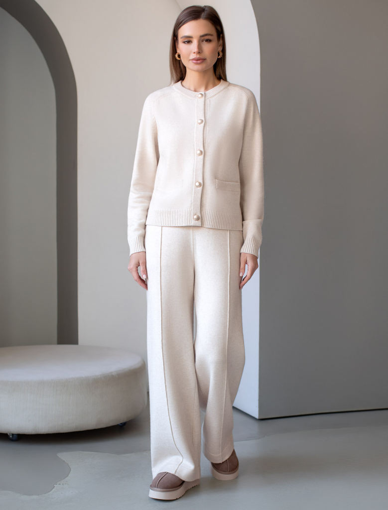 Кардиган выполнен из мягкой меланжевой пряжи с добавлением кашемира. Модель прямого силуэта гармонично впишется в любой образ с брюками, юбками и джинсами. Застежка на пуговицы в жемчужно-золотистом оттенке. Изделие очень приятное к телу, совершенно не колется и отлично сохраняет тепло. Сочетается в костюме с брюками D38.013, D38.012 и юбкой D36.016
