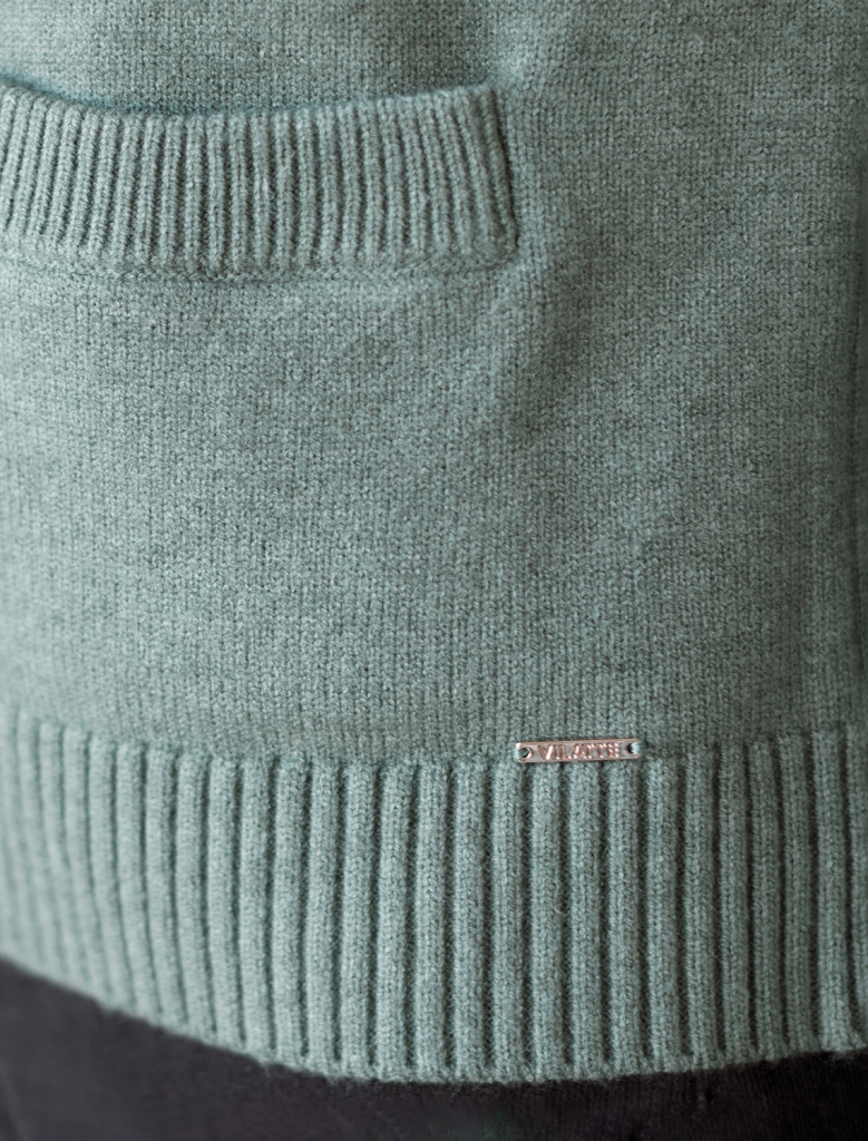 Кардиган выполнен из мягкой меланжевой пряжи с добавлением кашемира. Модель прямого силуэта гармонично впишется в любой образ с брюками, юбками и джинсами. Застежка на пуговицы в жемчужно-золотистом оттенке. Изделие очень приятное к телу, совершенно не колется и отлично сохраняет тепло. Сочетается в костюме с брюками D38.013, D38.012 и юбкой D36.016