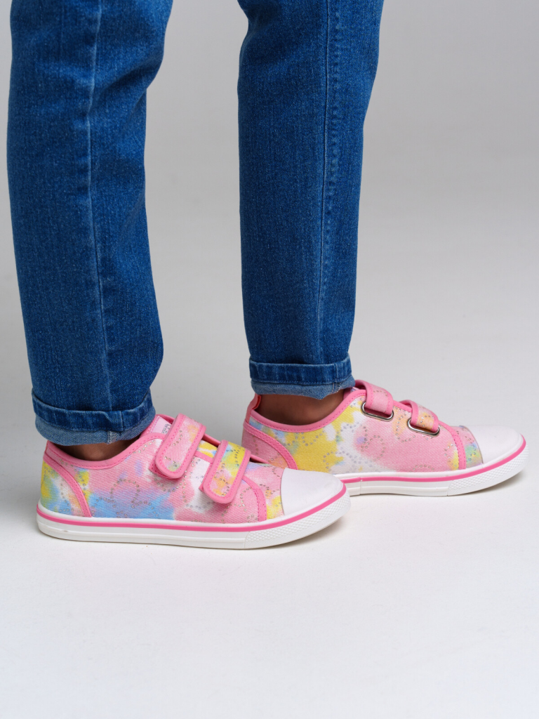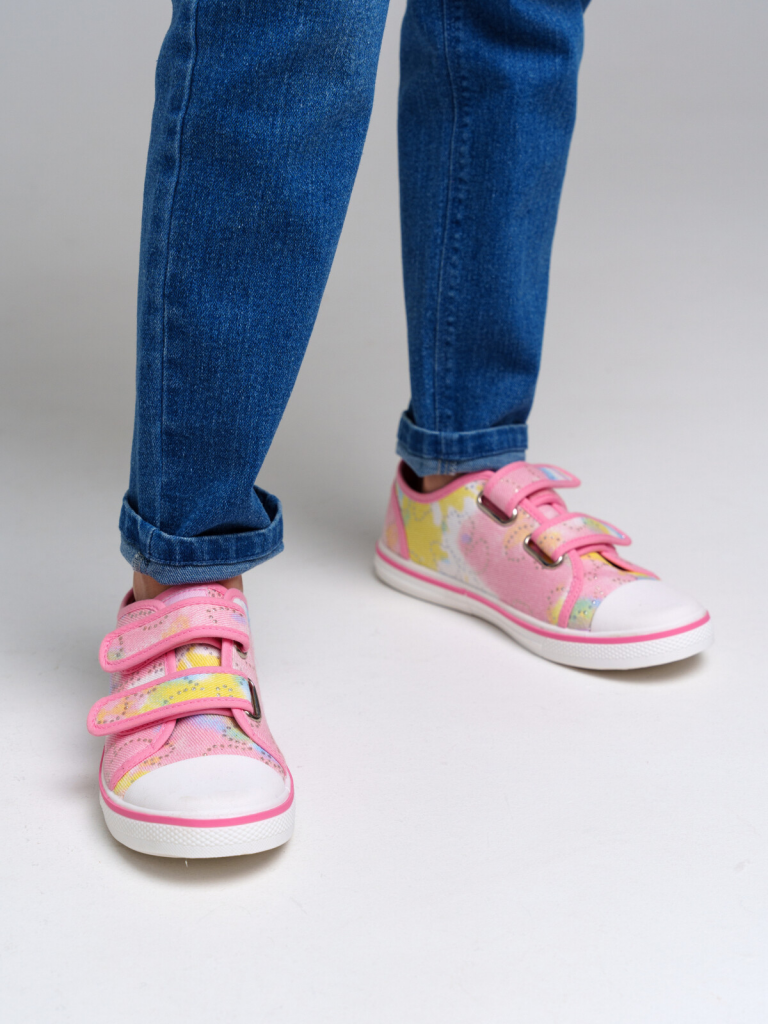 Кеды из текстиля. Текстильная хлопковая подкладка обладает высокой гигроскопичностью. Стелька выполнена из натуральной кожи. Две липучки создают удобство при обувании. Подошва из ПВХ легкая и гибкая, устойчива к истиранию.