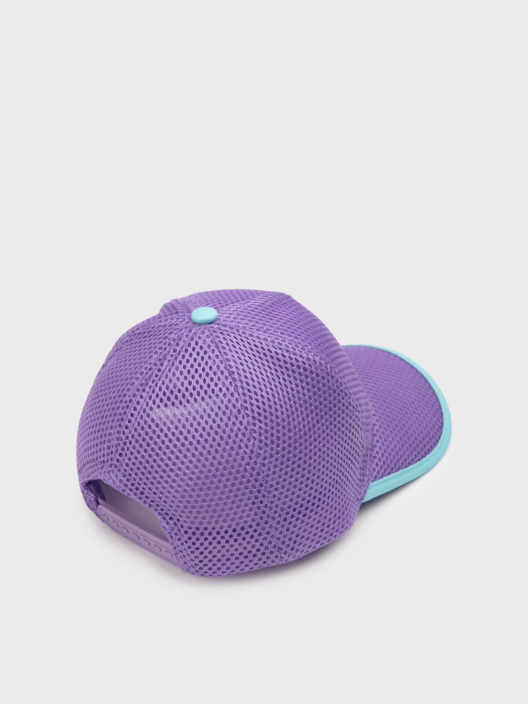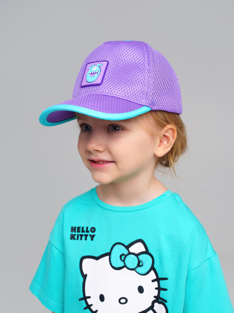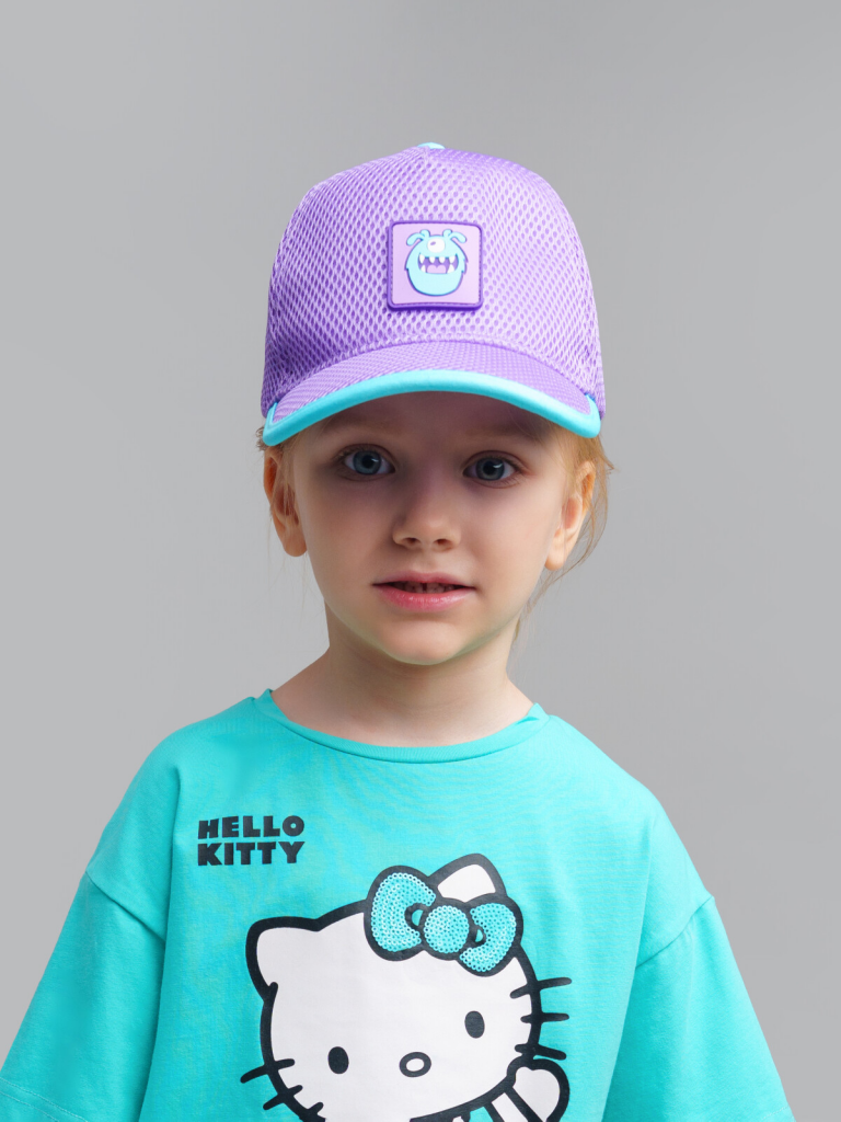 Кепка детская для девочки. Изогнутый козырек защищает глаза от солнца и сохраняет лицо в тени. Регулировка ширины застежкой на кнопки. Сетка.