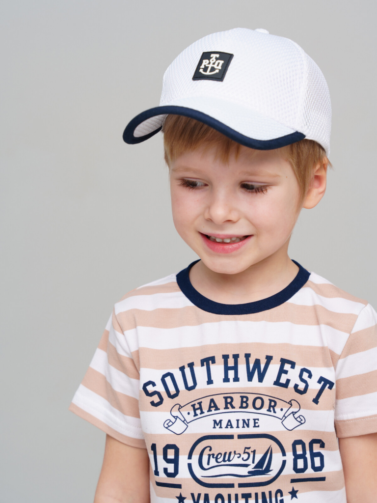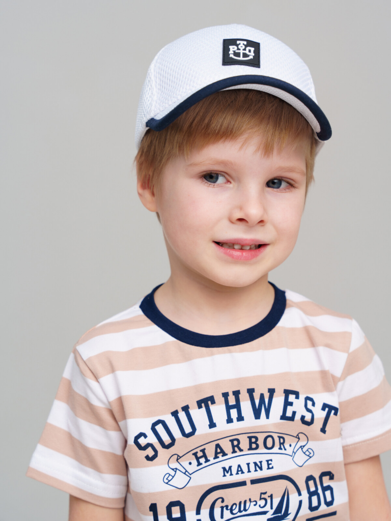 Кепка детская для мальчика. Изогнутый козырек защищает глаза от солнца и сохраняет лицо в тени. Регулировка ширины липучкой. Сетка.