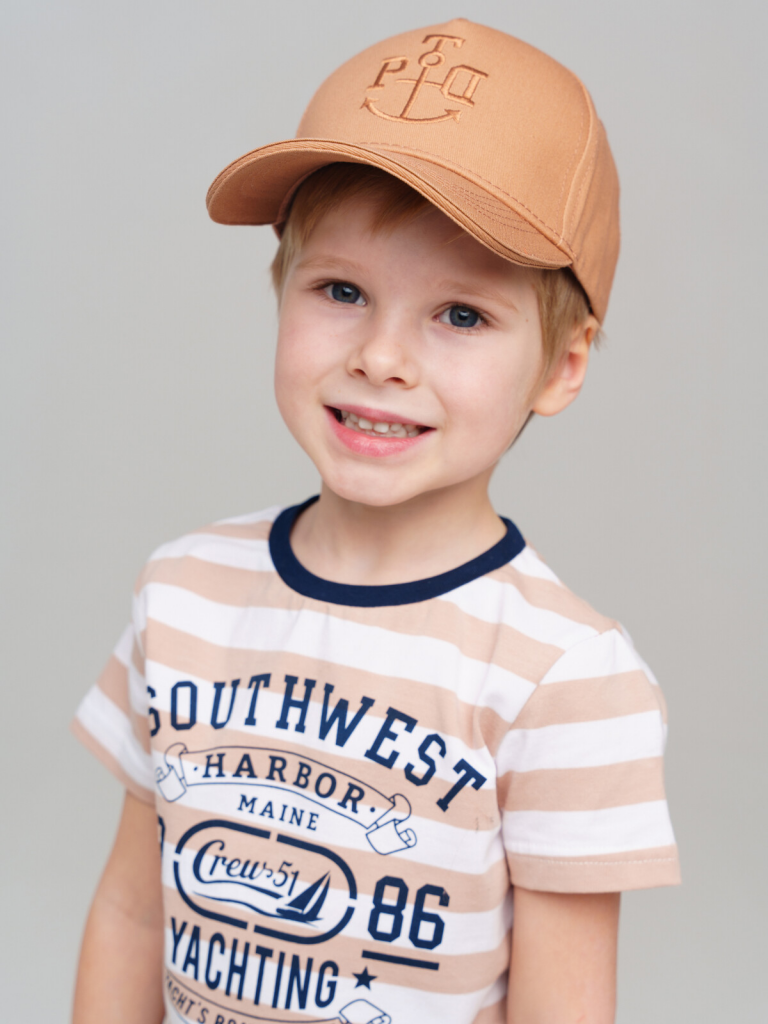 Кепка детская для мальчика. Кепка из 100% хлопка. Изогнутый козырек защищает глаза от солнца и сохраняет лицо в тени. Регулировка ширины липучкой.