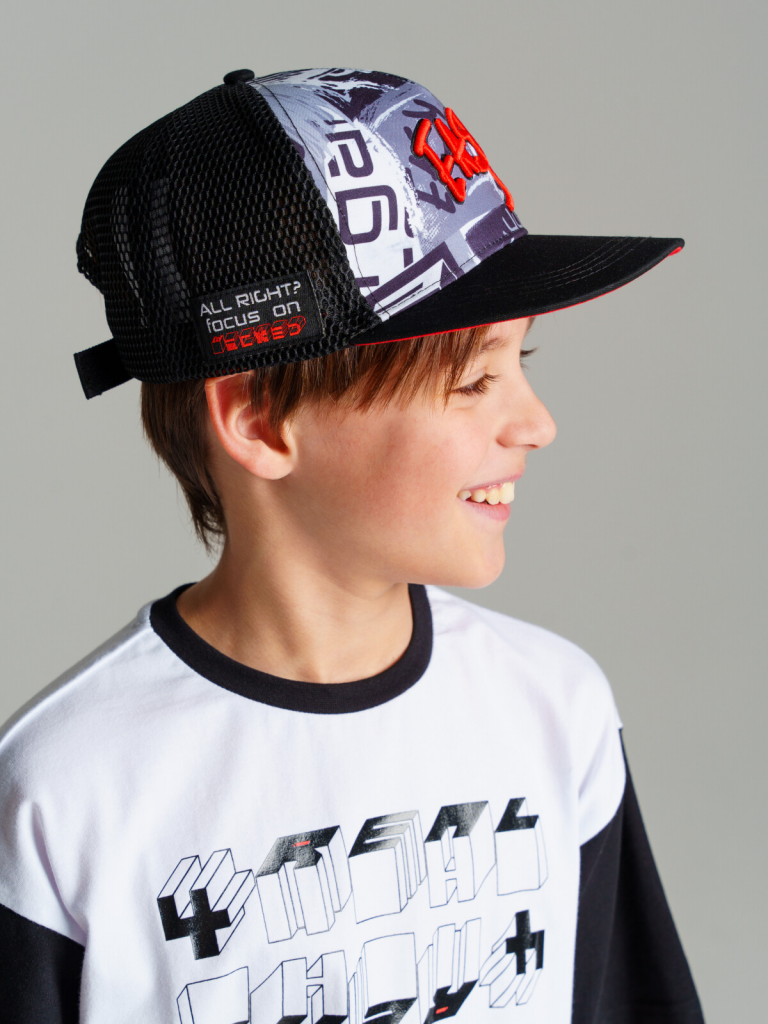 > Кепка текстильная для мальчиков черный,красный,разноцветный