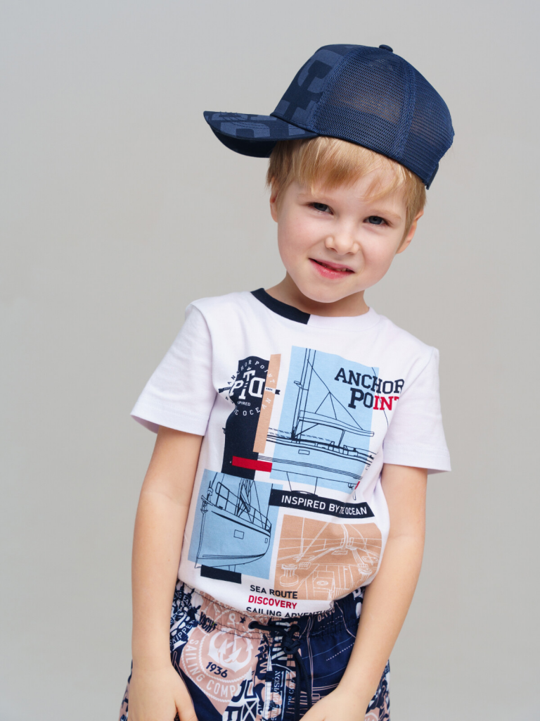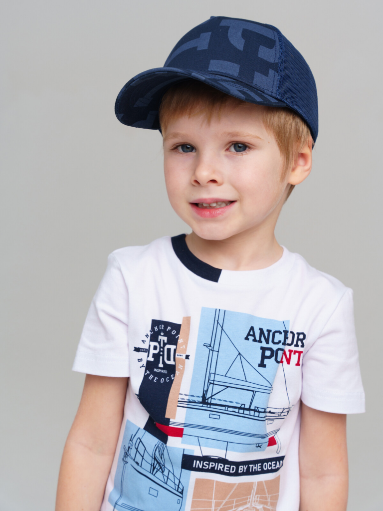 Кепка детская для мальчика. Изогнутый козырек защищает глаза от солнца и сохраняет лицо в тени. Регулировка ширины липучкой. Сетка.