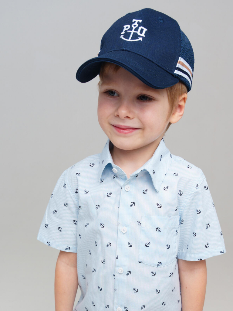 Кепка детская для мальчика. Изогнутый козырек защищает глаза от солнца и сохраняет лицо в тени. Регулировка ширины липучкой. Сетка.