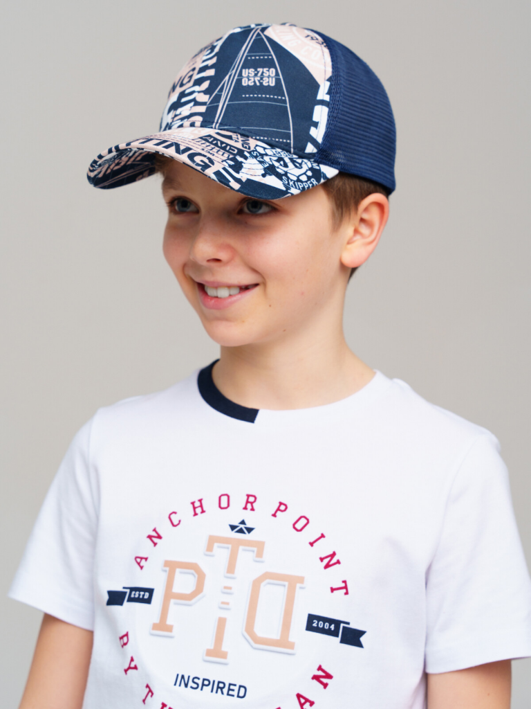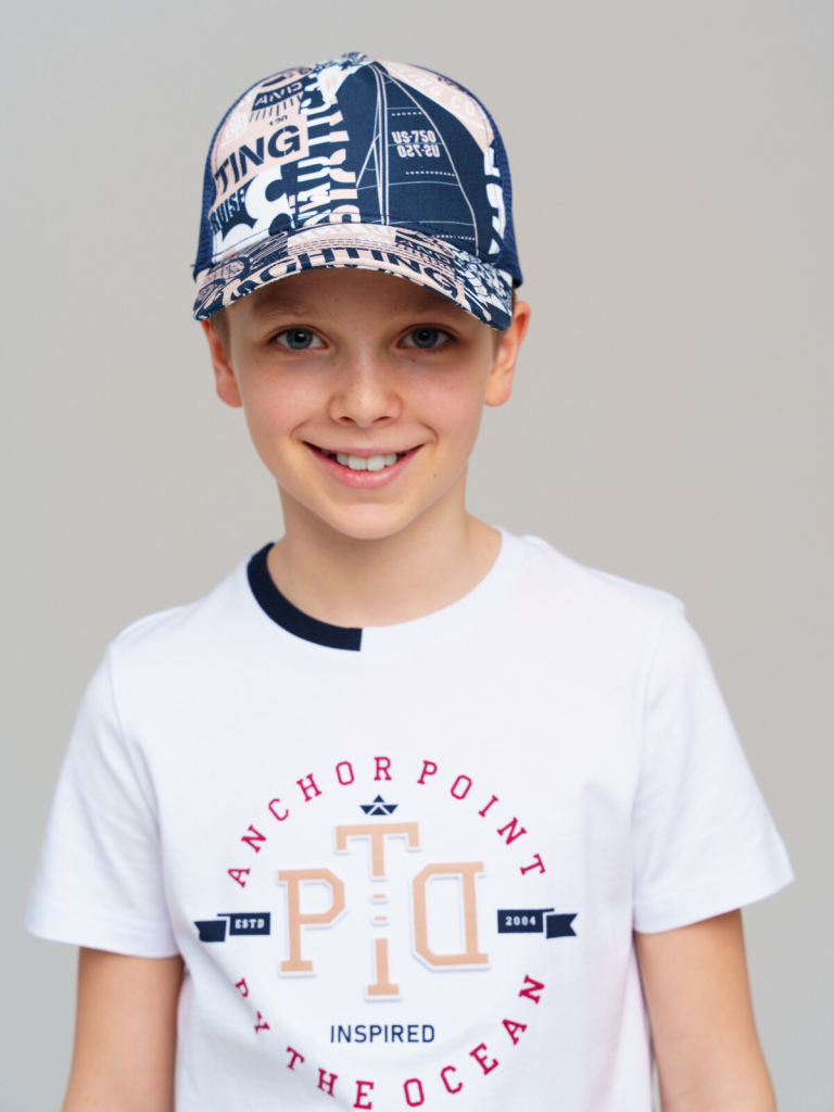 > Кепка текстильная для мальчиков тёмно-синий,белый,бежевый