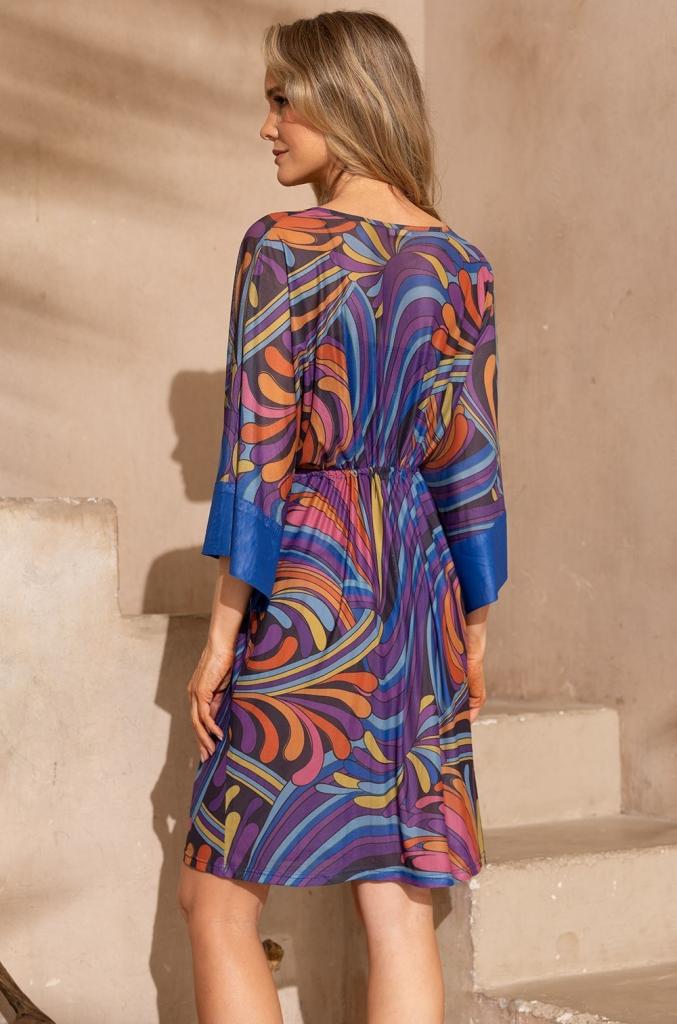 Короткий пляжный халат Mia-Amore с широкими длинными рукавами. Изделие выполнено из принтованной эластичной сетки. Ширина по линии талии регулируется за счет кулисы.