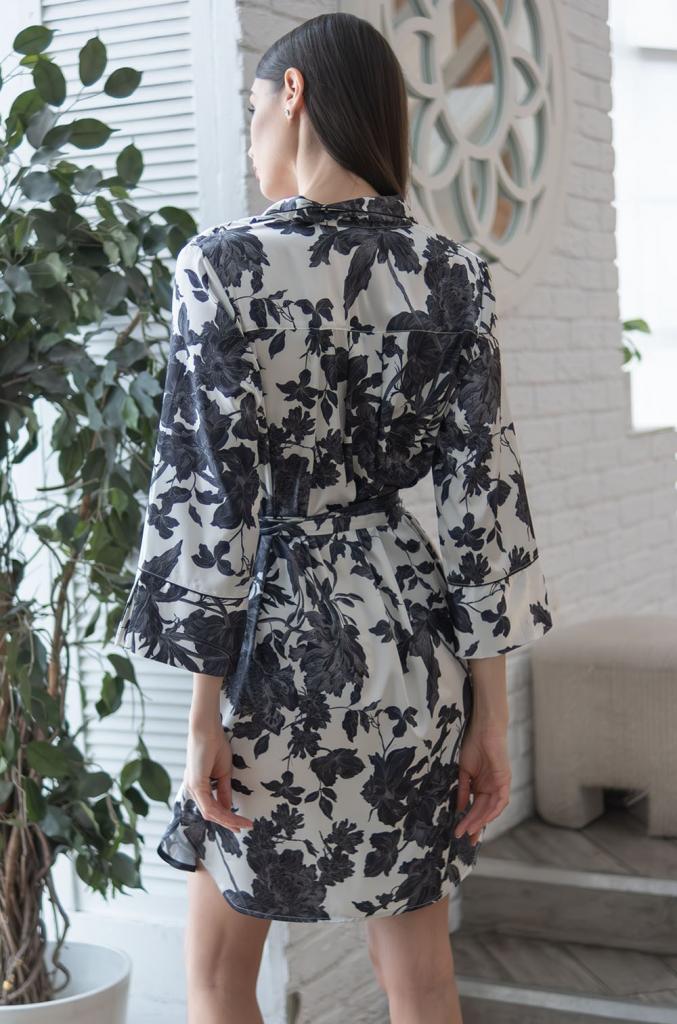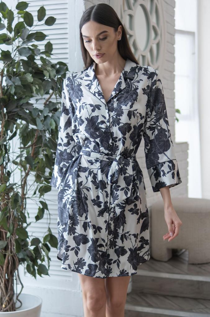 Короткая рубашка Mia-Amore с рукавом длиной ¾, которая выполнена из принтованного смесового шелка с контрастным кантом в виде отделки. По бокам обработаны разрезы для свободы движения. В боковых швах расположены карманы. Линию талии можно подчеркнуть за счет пояса, который идет в комплекте.