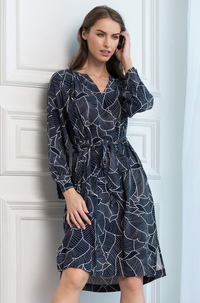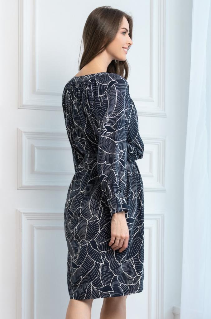Туника Mia-Amore с рукавами-реглан длиной 7/8 свободного силуэта выполнена из принтованного вискозного полотна. По бокам туники по низу есть разрезы, в боковых швах карманы. Туника комплектуется поясом.