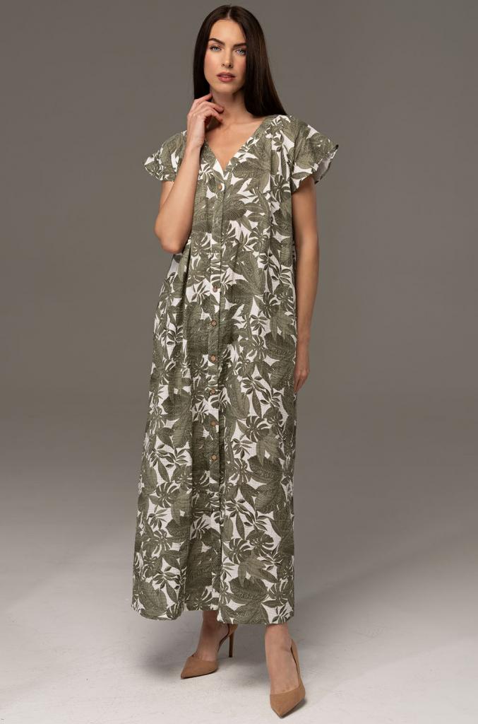 Удлиненное платье-рубашка Mia-Amore с центральной застежкой на пуговицы и коротким рукавом. Изделие выполнено из принтованного хлопкового муслина. По бокам расположены карманы. Линию талии можно подчеркнуть за счет двухцветного пояса, который идет в комплекте.