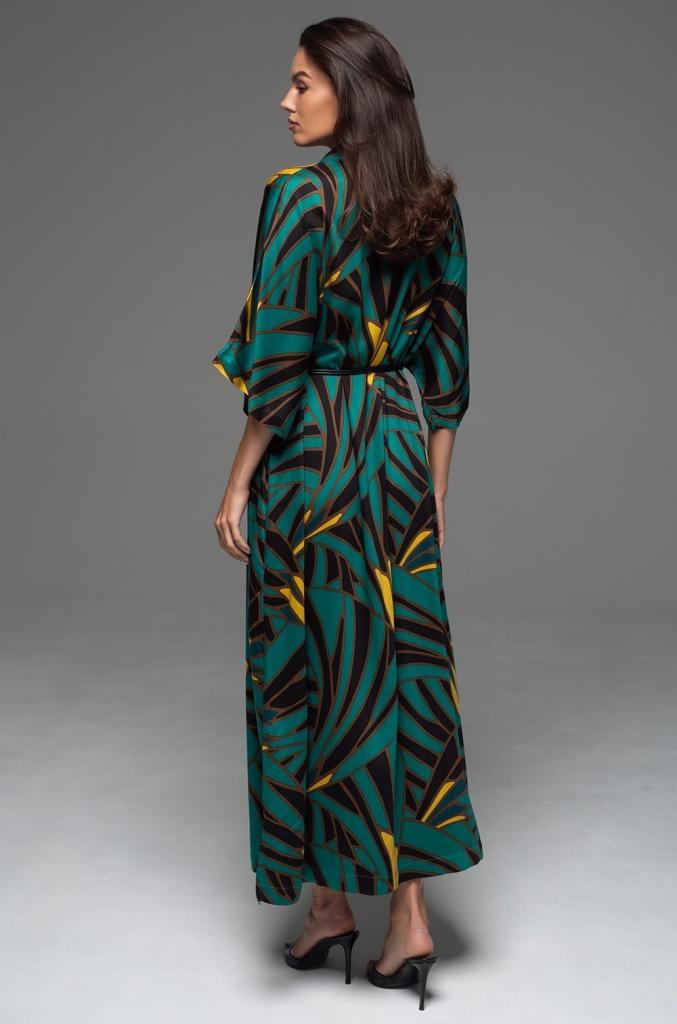 Длинная рубашка Mia-Amore свободного силуэта с широким рукавом до линии локтя. Рубашка выполнена из принтованного натурального материала. По низу боковых швов расположены разрезы для свободы движения. По бокам обработаны карманы. Линию талии можно подчеркнуть за счет стильного узкого пояса с кистями, который идет в комплекте.