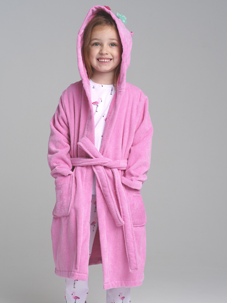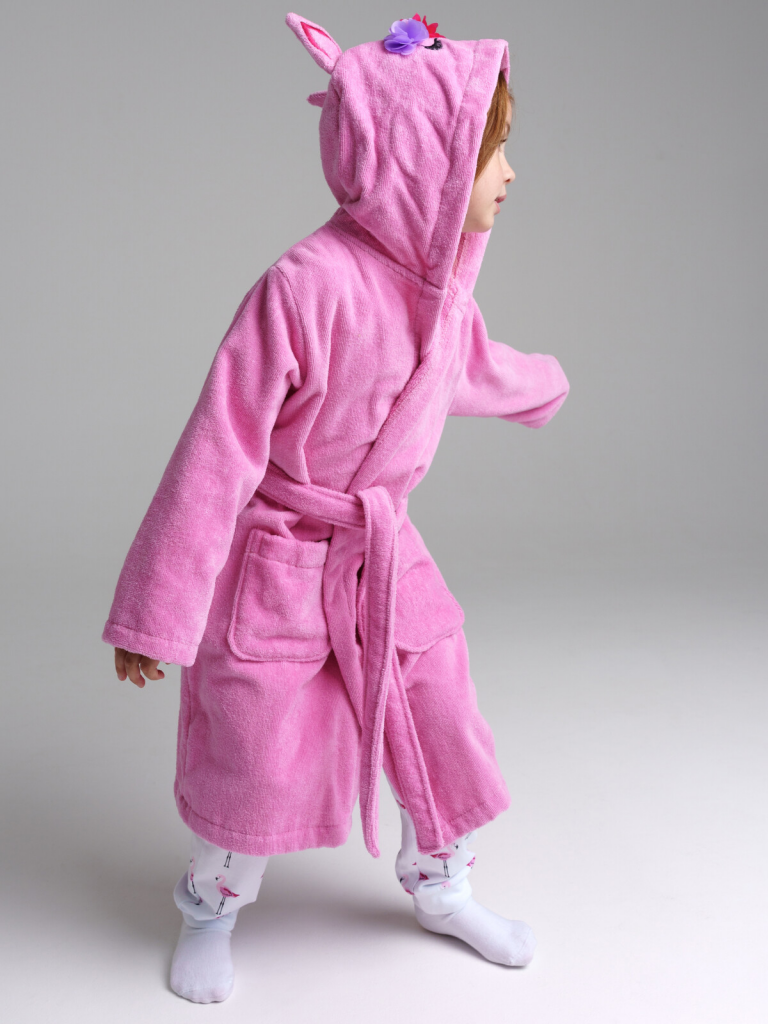 Мягкий и уютный махровый халат из высококачественного полотна. 100% натуральный хлопок. Отлично впитывает влагу и позволяет коже дышать. Пришитый пояс, по спинке резинка. Декорированный капюшон.