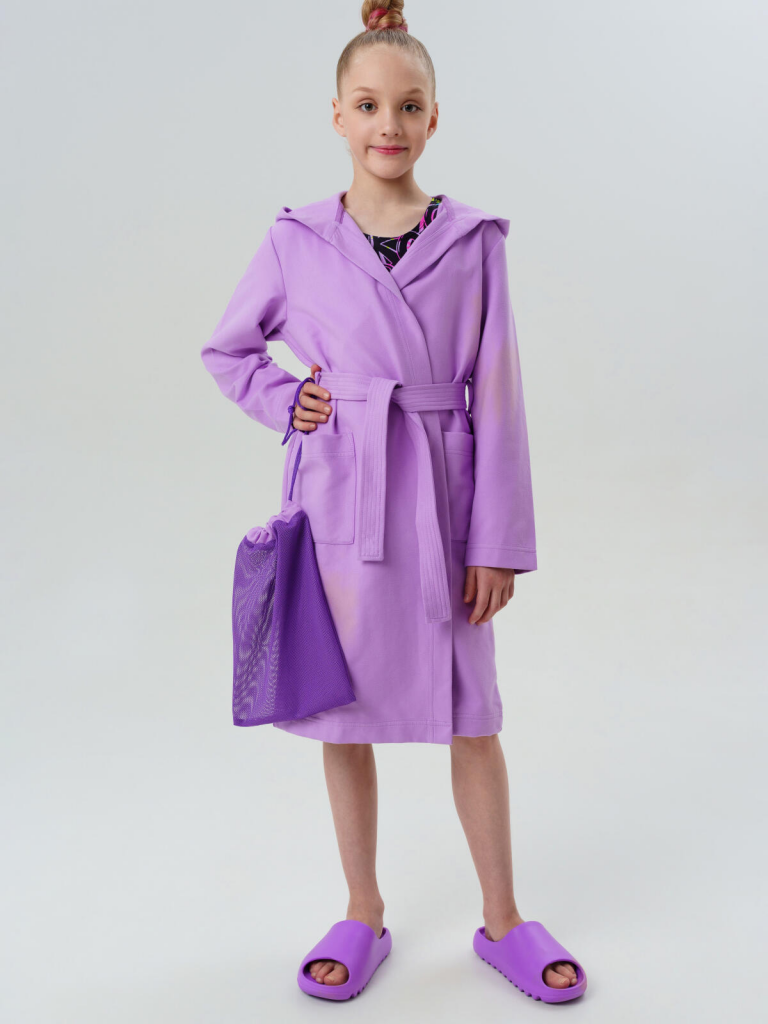 Спортивный халат из микрофибры для девочки подростка от PlayToday — универсальный аксессуар для бассейна, спорта и активного отдыха. Идеальный вариант после тренировок, плавания и душа, который сочетает комфорт, функциональность и современный стиль. Преимущества модели:+ микрофибра плотностью 200 г/м2+ лёгкий и компактный+ фиксированный пояс, пришитый к спинке+ два глубоких кармана+ объёмный несъёмный капюшон+ мягкая ткань+ универсальный фасон+ лёгкий уходЭтот яркий спортивный халат из мягкой микрофибры идеально подходит для девочек и подростков, ведущих активный образ жизни. Материал приятен к телу, не линяет и не теряет форму после многочисленных стирок. Благодаря быстрому впитыванию влаги и лёгкости, этот фиолетовый подростковый трикотажный халат незаменим после тренировок, физкультуры, плавания или душа — удобно брать с собой в рюкзак, сумку или чемодан.Свободный крой обеспечивает полную свободу движений — в таком стильном детском халате для девочек удобно ходить дома, на сборах или в спортивных лагерях. Капюшон помогает быстро согреться, а глубокие карманы — всегда под рукой для мелочей.Совет по стилю: Надевайте этот мягкий уютный халат сразу после плавания или душа — он быстро уберёт влагу и поможет сохранить тепло. Сочетайте с комплектами спортивной одежды PlayToday для полного образа спортсмена. Отлично подойдёт для школы с бассейном, спортивных секций, лагеря и домашних будней.Модель представлена на рост 122-164 см — подходит для девочек и подростков от 7 до 14 лет.Модный спортивный фиолетовый халат из микрофибры для девочки от PlayToday — комфорт и забота о каждом юном спортсмене. Надёжный помощник для тренировок, бассейна и активного отдыха!