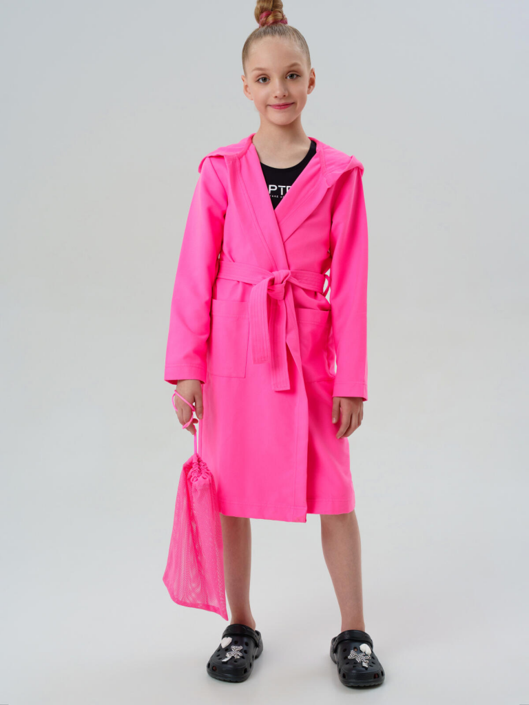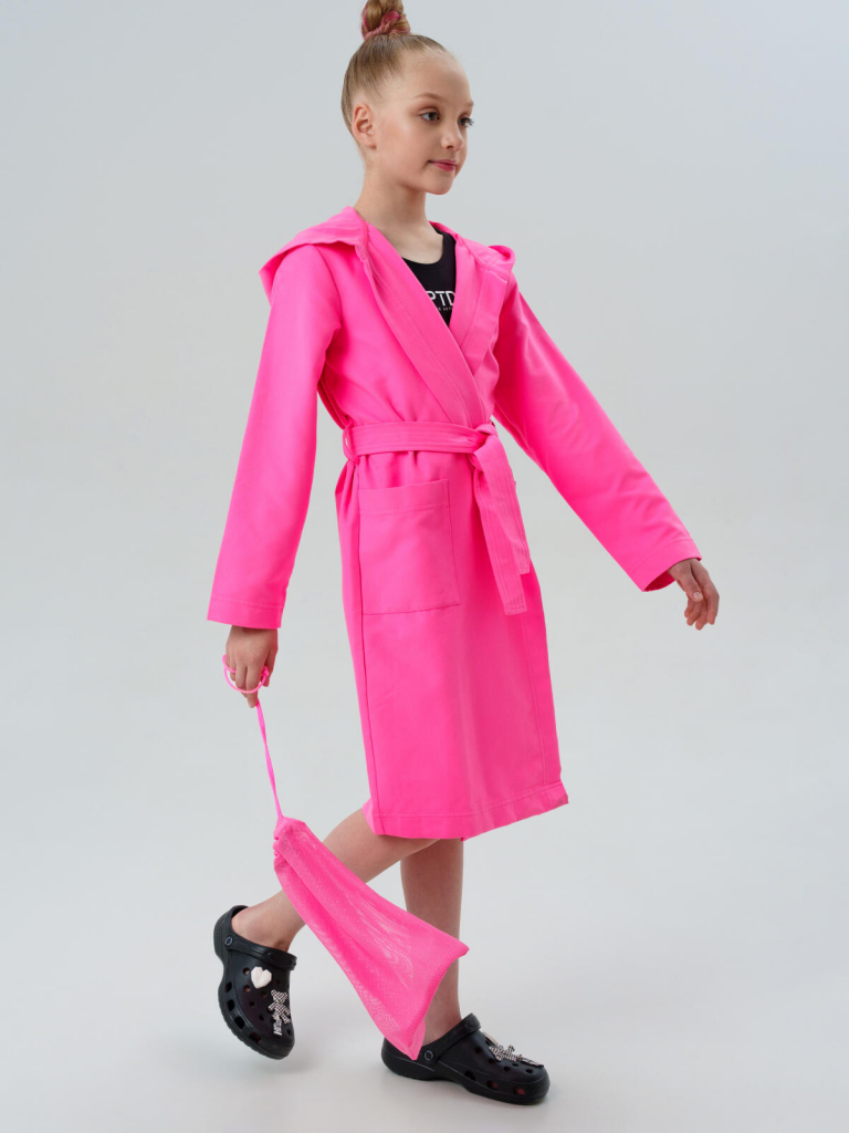 Спортивный халат из микрофибры для девочки подростка от PlayToday — универсальный аксессуар для бассейна, спорта и активного отдыха. Идеальный вариант после тренировок, плавания и душа, который сочетает комфорт, функциональность и современный стиль. Преимущества модели:+ микрофибра плотностью 200 г/м2+ лёгкий и компактный+ фиксированный пояс, пришитый к спинке+ два глубоких кармана+ объёмный несъёмный капюшон+ мягкая ткань+ универсальный фасон+ лёгкий уходЭтот яркий спортивный халат из мягкой микрофибры идеально подходит для девочек и подростков, ведущих активный образ жизни. Материал приятен к телу, не линяет и не теряет форму после многочисленных стирок. Благодаря быстрому впитыванию влаги и лёгкости, этот розовый подростковый халат незаменим после тренировок, физкультуры, плавания или душа — удобно брать с собой в рюкзак, сумку или чемодан.Свободный крой обеспечивает полную свободу движений — в таком стильном детском халате для девочек удобно ходить дома, на сборах или в спортивных лагерях. Капюшон помогает быстро согреться, а глубокие карманы — всегда под рукой для мелочей.Совет по стилю: Надевайте этот мягкий уютный халат сразу после плавания или душа — он быстро уберёт влагу и поможет сохранить тепло. Сочетайте с комплектами спортивной одежды PlayToday для полного образа спортсмена. Отлично подойдёт для школы с бассейном, спортивных секций, лагеря и домашних будней.Модель представлена на рост 122-164 см — подходит для девочек и подростков от 7 до 14 лет.Модный спортивный розовый халат из микрофибры для девочки от PlayToday — комфорт и забота о каждом юном спортсмене. Надёжный помощник для тренировок, бассейна и активного отдыха!
