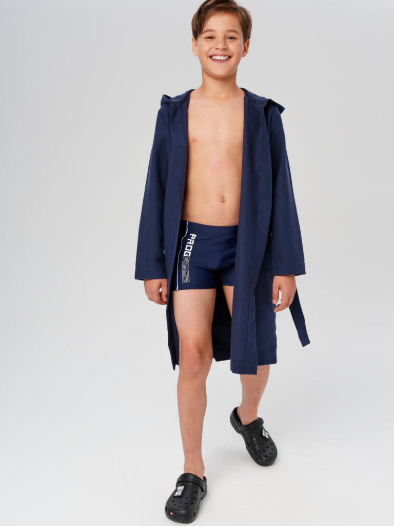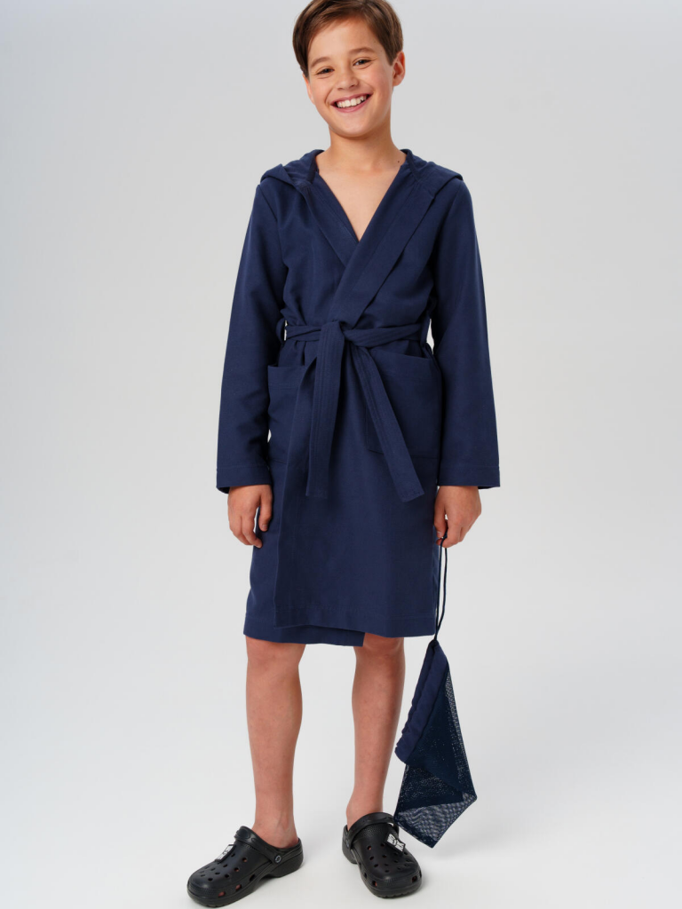 Спортивный халат из микрофибры для мальчика и подростка от PlayToday — универсальный аксессуар для бассейна, спорта и активного отдыха. Идеальный вариант после тренировок, плавания и душа, который сочетает комфорт, функциональность и современный стиль. Преимущества модели:+ микрофибра плотностью 200 г/м2+ лёгкий и компактный+ фиксированный пояс, пришитый к спинке+ два глубоких кармана+ объёмный несъёмный капюшон+ мягкая ткань+ универсальный фасон+ лёгкий уходЭтот универсальный спортивный халат из мягкой микрофибры идеально подходит для мальчиков и подростков, ведущих активный образ жизни. Материал приятен к телу, не линяет и не теряет форму после многочисленных стирок. Благодаря быстрому впитыванию влаги и лёгкости, этот темно-синий подростковый халат незаменим после тренировок, физкультуры, плавания или душа — удобно брать с собой в рюкзак, сумку или чемодан.Свободный крой обеспечивает полную свободу движений — в таком стильном детском халате для мальчиков удобно ходить дома, на сборах или в спортивных лагерях. Капюшон помогает быстро согреться, а глубокие карманы — всегда под рукой для мелочей.Совет по стилю: Надевайте этот мягкий уютный халат сразу после плавания или душа — он быстро уберёт влагу и поможет сохранить тепло. Сочетайте с комплектами спортивной одежды PlayToday для полного образа спортсмена. Отлично подойдёт для школы с бассейном, спортивных секций, лагеря и домашних будней.Модель представлена на рост 122-176 см — подходит для мальчиков и подростков от 7 до 16 лет.Модный спортивный синий халат из микрофибры для мальчика от PlayToday — комфорт и забота о каждом юном спортсмене. Надёжный помощник для тренировок, бассейна и активного отдыха!