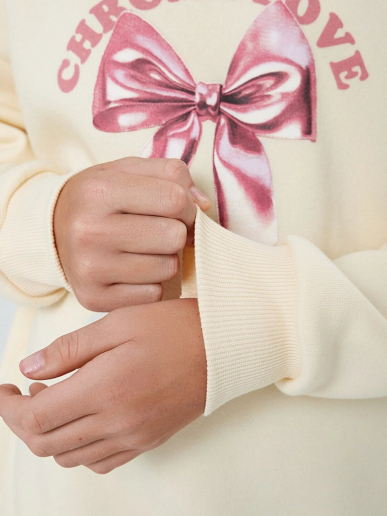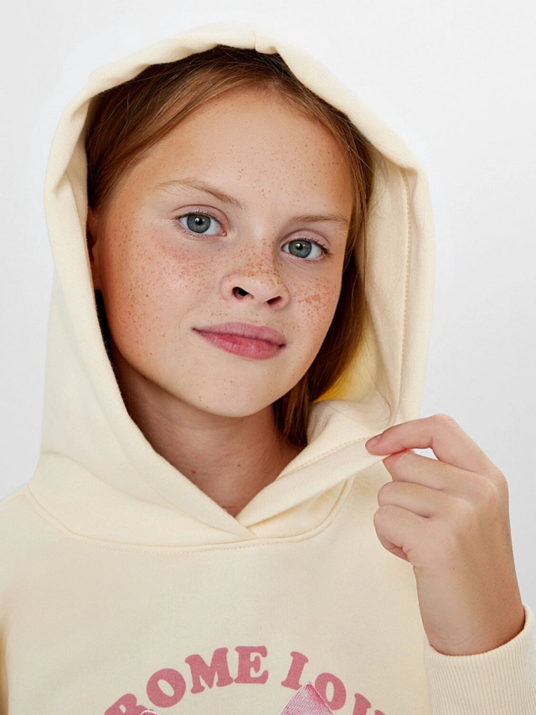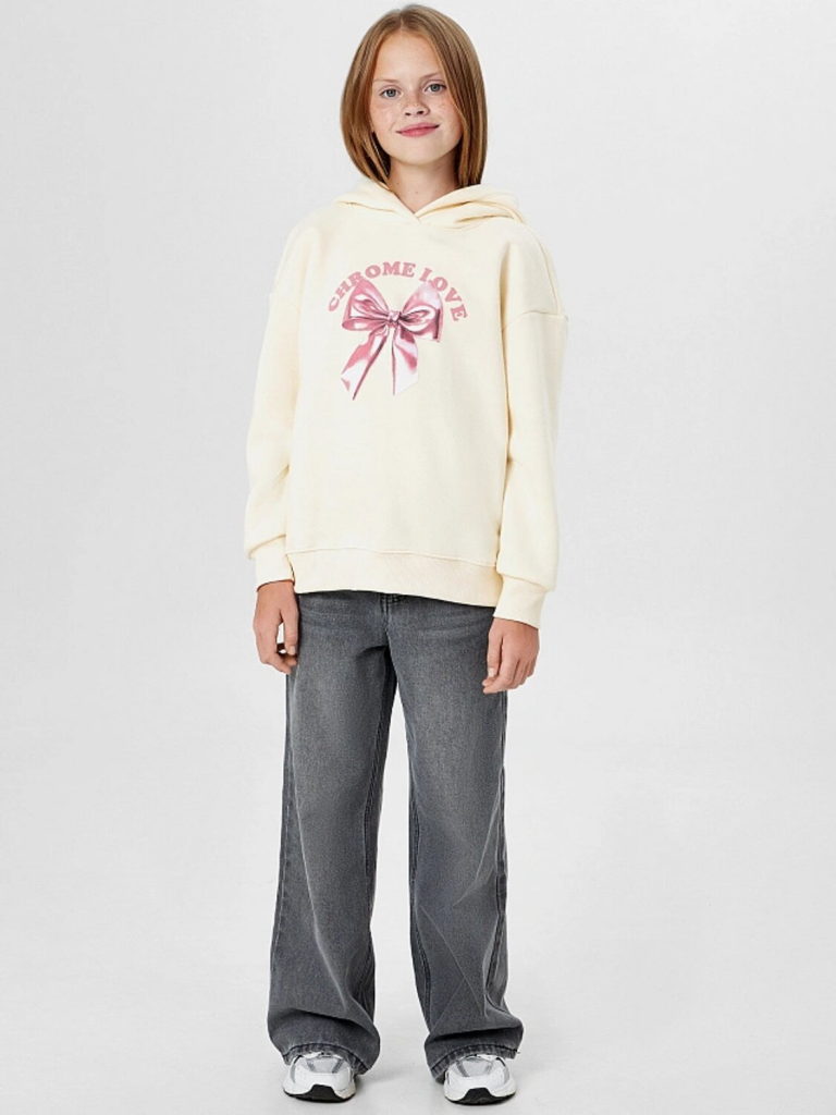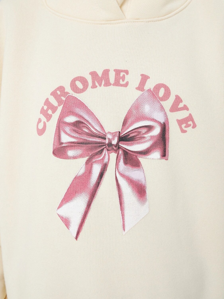 Бежевое худи для девочек с надписью «Chrome love» и принтом банта — это стильная и уютная вещь для повседневной носки. Модель силуэта оверсайз выполнена из мягкого трикотажного футера с начесом.