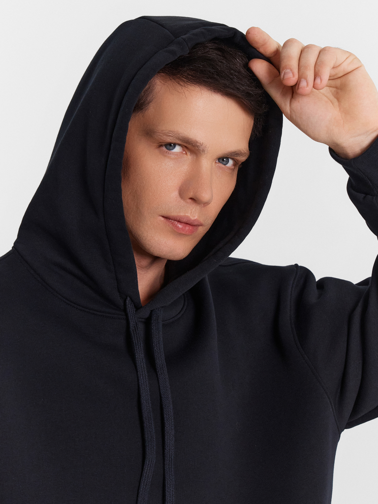 Горловина округлой формы с капюшоном. Капюшон двухшовный на подкладке из основного полотна.
