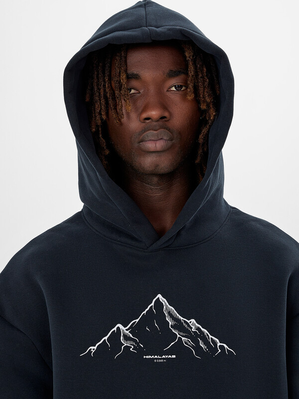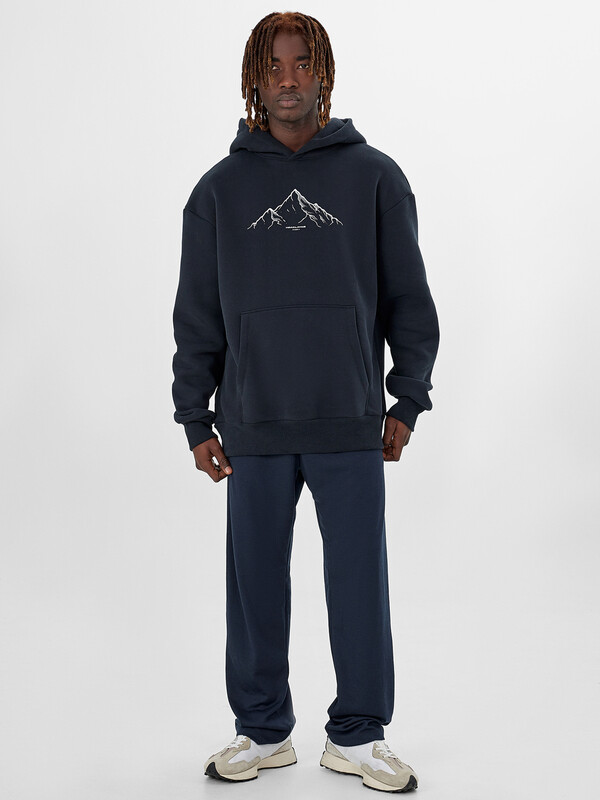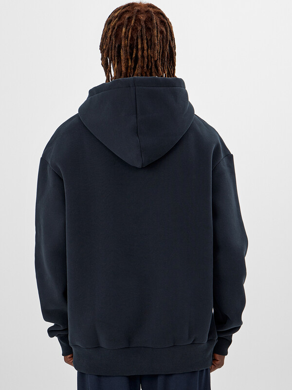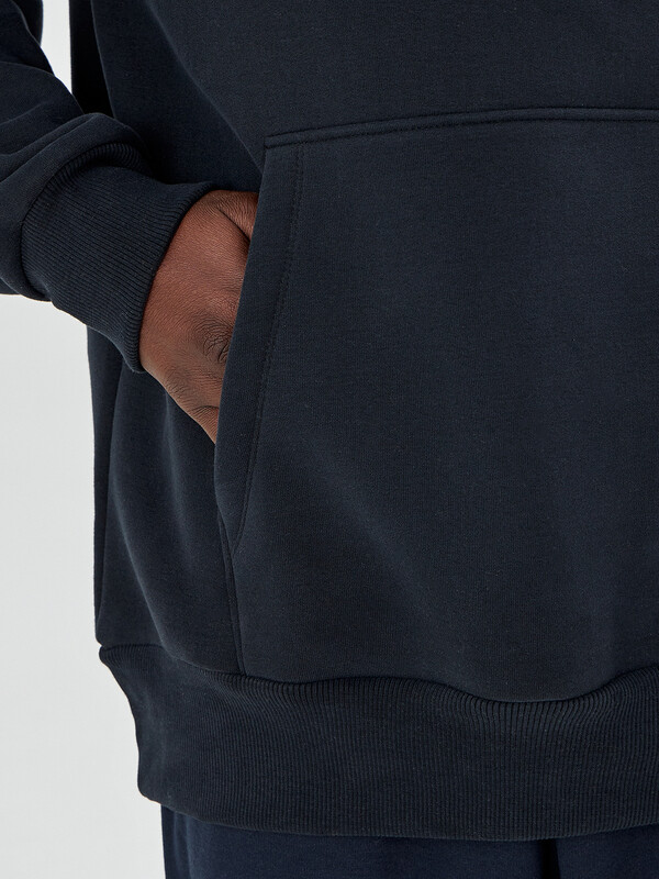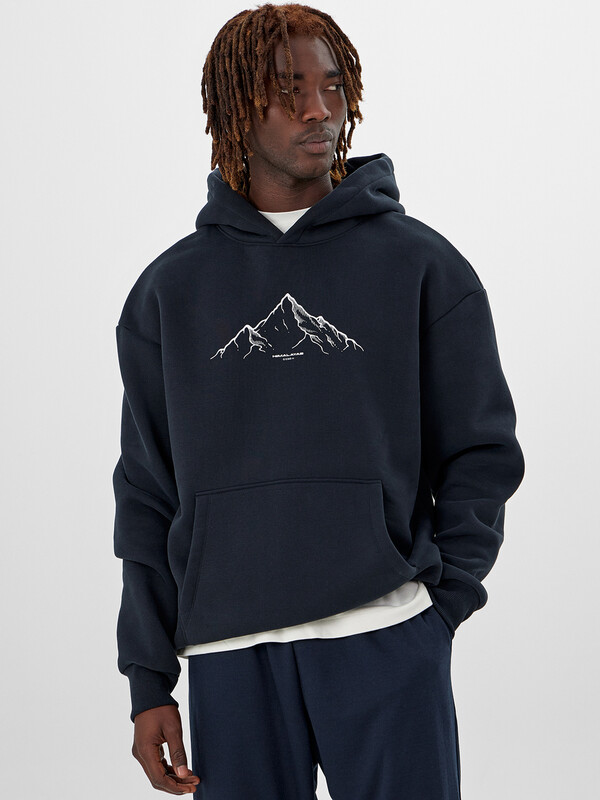 Мужское худи свободного кроя – стильная и практичная вещь для повседневной носки. Худи с капюшоном и манжетами выполнено из плотного трикотажного футера с мягким подчесом, который отлично сохраняет тепло. Свободный силуэт со спущенным плечом и удлиненной спинкой обеспечивает комфорт в движении, а эластичные манжеты и пояс из рибаны помогают добиться идеальной посадки.
