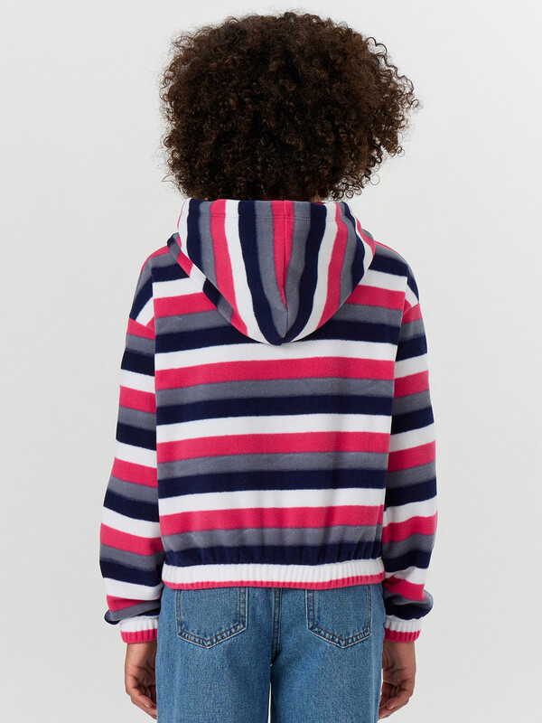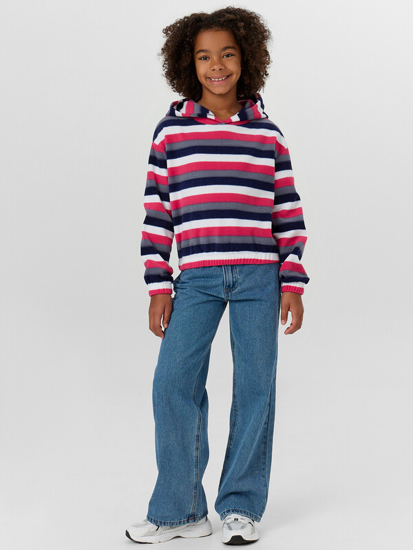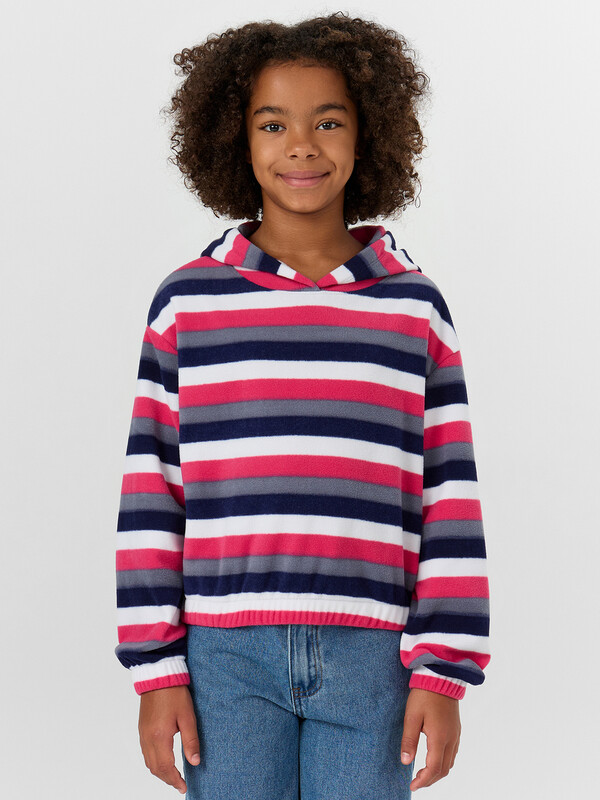 Укороченное худи от Mark Formelle — это гармоничное сочетание современного дизайна и функциональности, созданное для активных и стильных девочек. Модель выполнена из мягкого, приятного на ощупь флиса, который надежно сохраняет тепло, оставаясь легким и комфортным в носке. Свободный крой с заниженной проймой дарит полную свободу движений, а капюшон и круглая горловина добавляют практичности и защищают от ветра в прохладную погоду. Удлиненные рукава с эластичной тесьмой по краям надежно фиксируются, не сдавливая кожу, создавая аккуратный силуэт. Эластичная отделка по нижнему краю дополнительно подчеркивает спортивный стиль, при этом мягко облегая фигуру и предотвращая задирание ткани во время активных движений. Это худи легко комбинируется с джинсами, спортивными брюками или леггинсами, создавая универсальный образ на каждый день — для прогулки, школы, отдыха или тренировки. Стильная, уютная и практичная вещь, которая обязательно станет любимой частью гардероба девочки.