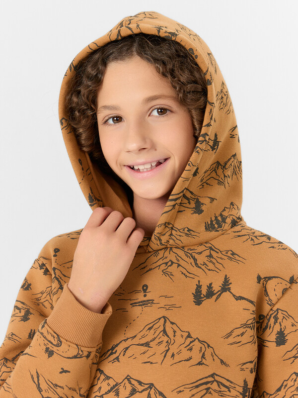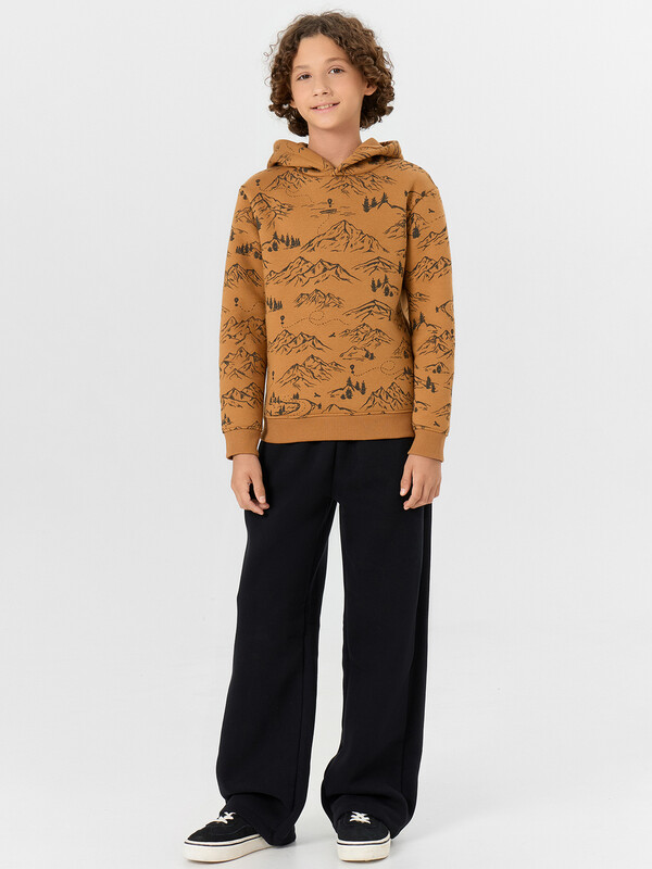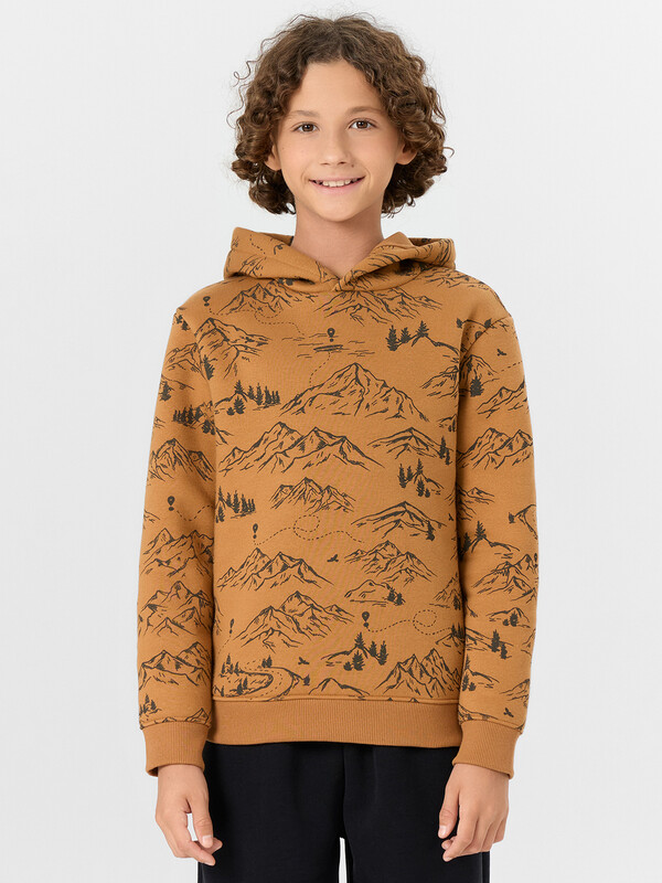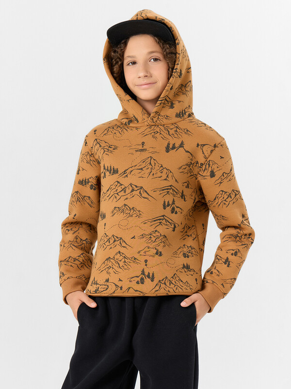 Стильное худи для мальчиков из футера с подчесом — это универсальная модель, которая станет отличным выбором для прохладной погоды. Футер с подчесом — плотный трикотаж с мягким внутренним слоем, который обеспечивает приятные тактильные ощущения, сохраняет тепло и не теряет форму после многократных стирок. Изделие подходит как для активных прогулок, так и для домашнего отдыха благодаря удачному сочетанию уюта и функциональности. Прямой и свободный крой обеспечивает свободу движений и комфорт на протяжении всего дня. Капюшон защищает голову от ветра и холода, а длинные рукава на манжетах предотвращают задирание и сохраняют тепло. Спущенная линия плеча придает худи стильный силуэт casual, который легко сочетается с джинсами, спортивными брюками и кедами. Худи доступно в различных расцветках и размерах, что позволяет подобрать вариант по вкусу. Отлично подойдет как для школы, так и для прогулок, секций или семейных выходных.