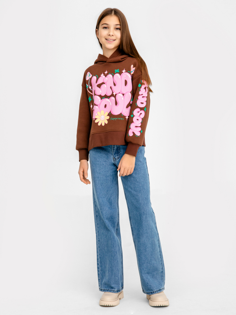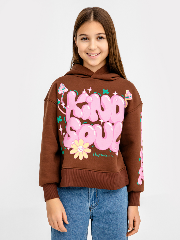 Стильное худи оверсайз для девочек, созданное из трикотажного футера с теплым подчесом. В основе состава — высококачественный хлопок. Округлая горловина, просторный уютный капюшон – ничего лишнего. Дополнительную свободу дарит спущенная линия плеча. Отличный вариант для вашей девочки на осень, зиму и демисезон. Дополнить можно стильным низом из линейки базовой детской одежды. Рекомендуем!