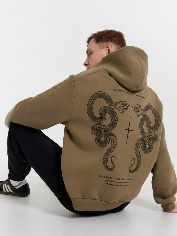 Худи хаки +печать