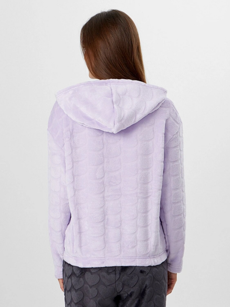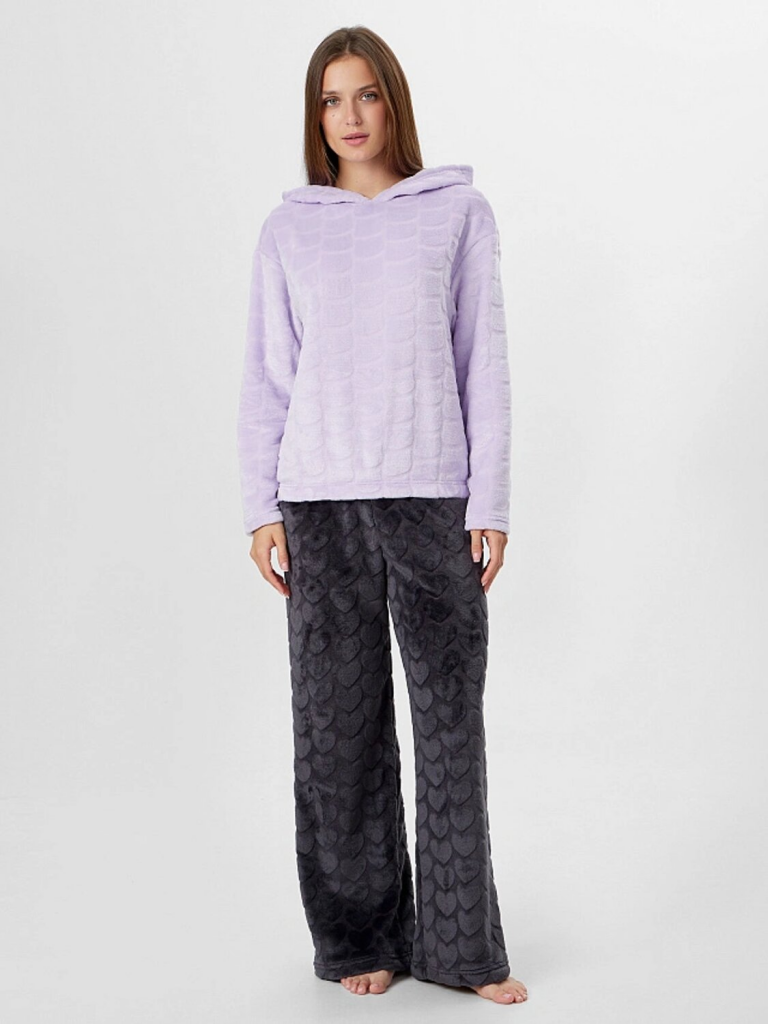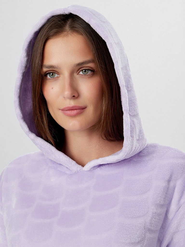 Худи домашнее женское с меховым ворсом — это уютное и стильное решение для комфортного отдыха. Модель свободного силуэта выполнена из мягкого трикотажа с меховым ворсом, который обеспечивает тепло и нежность прикосновения к коже. Круглая горловина с капюшоном и длинные рукава дарят ощущение защищенности, а эластичный пояс по низу мягко фиксирует худи, не стягивая талию.