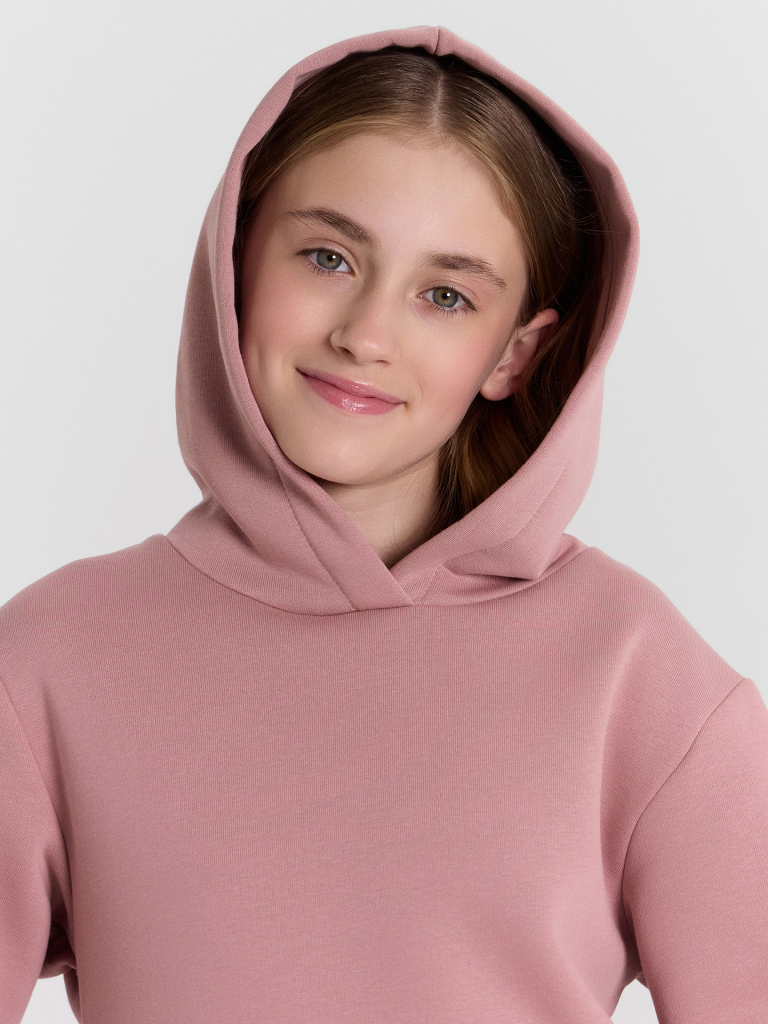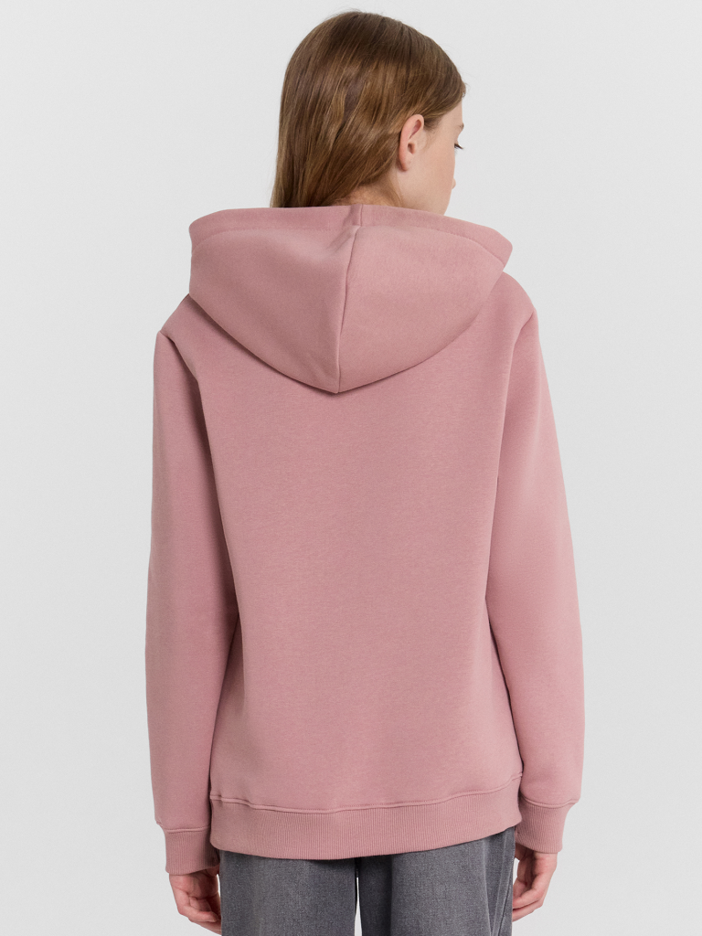 Худи из нежного футера с теплым подчесом. Силуэт прямой и свободный, рукава длинные на манжетах, линия плеча слегка спущена. Уюта добавляет просторный мягкий капюшон на подкладке. Отличный вариант с очень интересным дизайном!