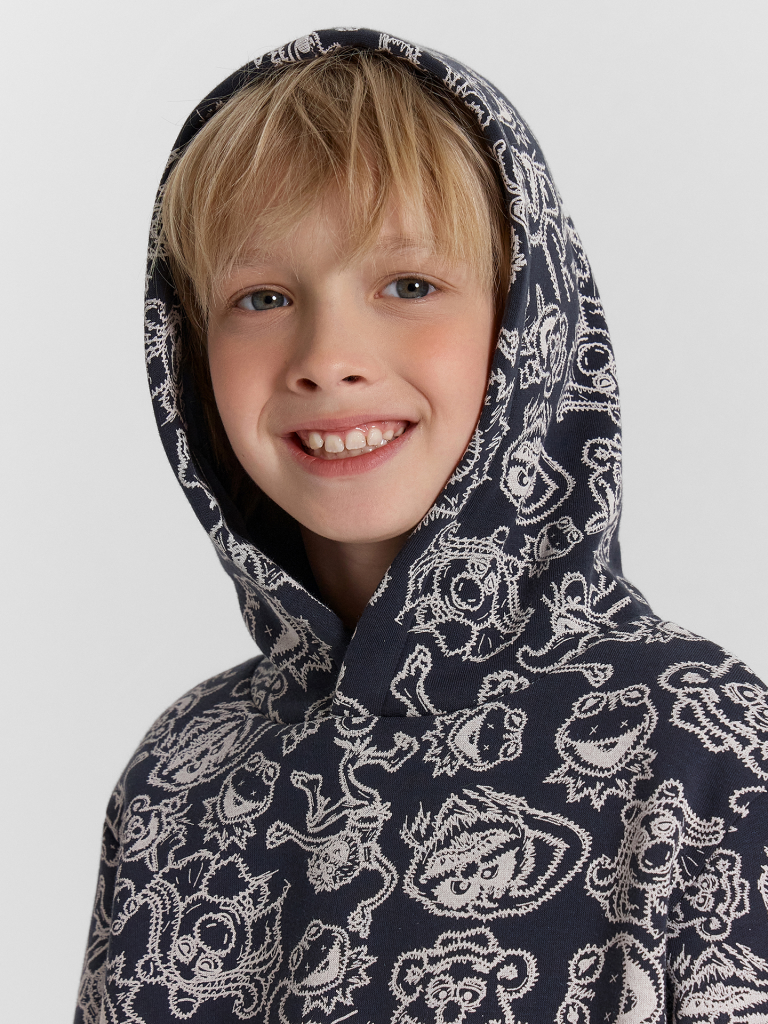 Стильное худи из футера с подчесом – нежного и долговечного трикотажного полотна. Силуэт прямой и свободный. Уютный капюшон, длинные рукава на манжетах, немного спущенная линия плеча – максимально комфортная модель!