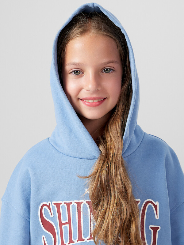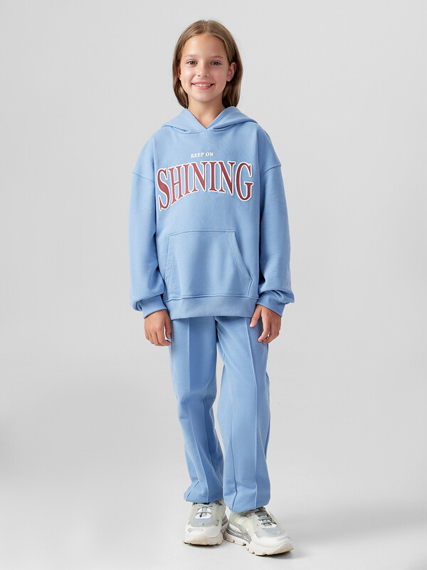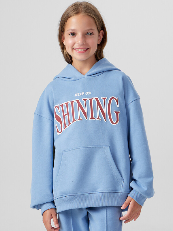 Худи для девочек свободного силуэта в стиле оверсайз — это стильная и удобная модель, идеально подходящая для активного дня, прогулок или домашнего отдыха. Круглая горловина и капюшон со средним швом, выполненный на подкладке из основного материала, создают уютный и завершенный образ. Спущенное плечо и длинный рукав придают худи расслабленный вид, а манжеты из рибаны по низу рукавов обеспечивают хорошую посадку и сохраняют форму. На передней части расположен карман кенгуру — функциональный и стильный элемент, который добавляет удобства и подчеркивает спортивный характер изделия. Худи выполнено из футера без подчеса — плотного, но мягкого материала, который хорошо держит форму и подходит для межсезонья. Это универсальная вещь, которая легко сочетается с джинсами, леггинсами или спортивными брюками, оставаясь актуальной в любом образе.
