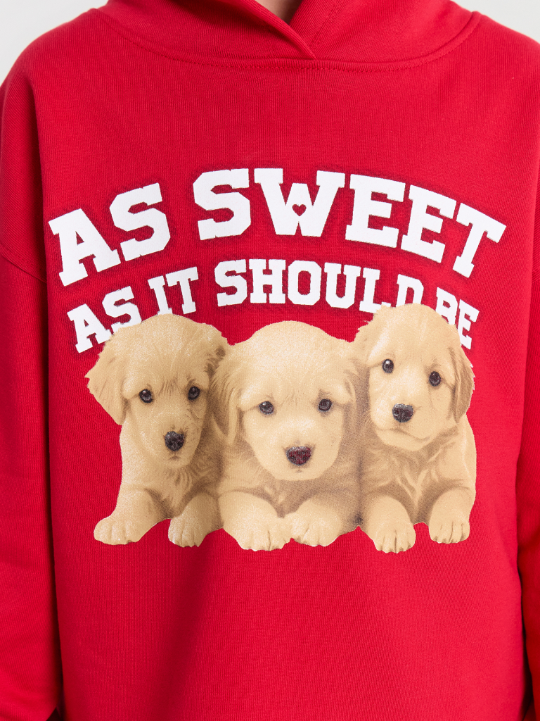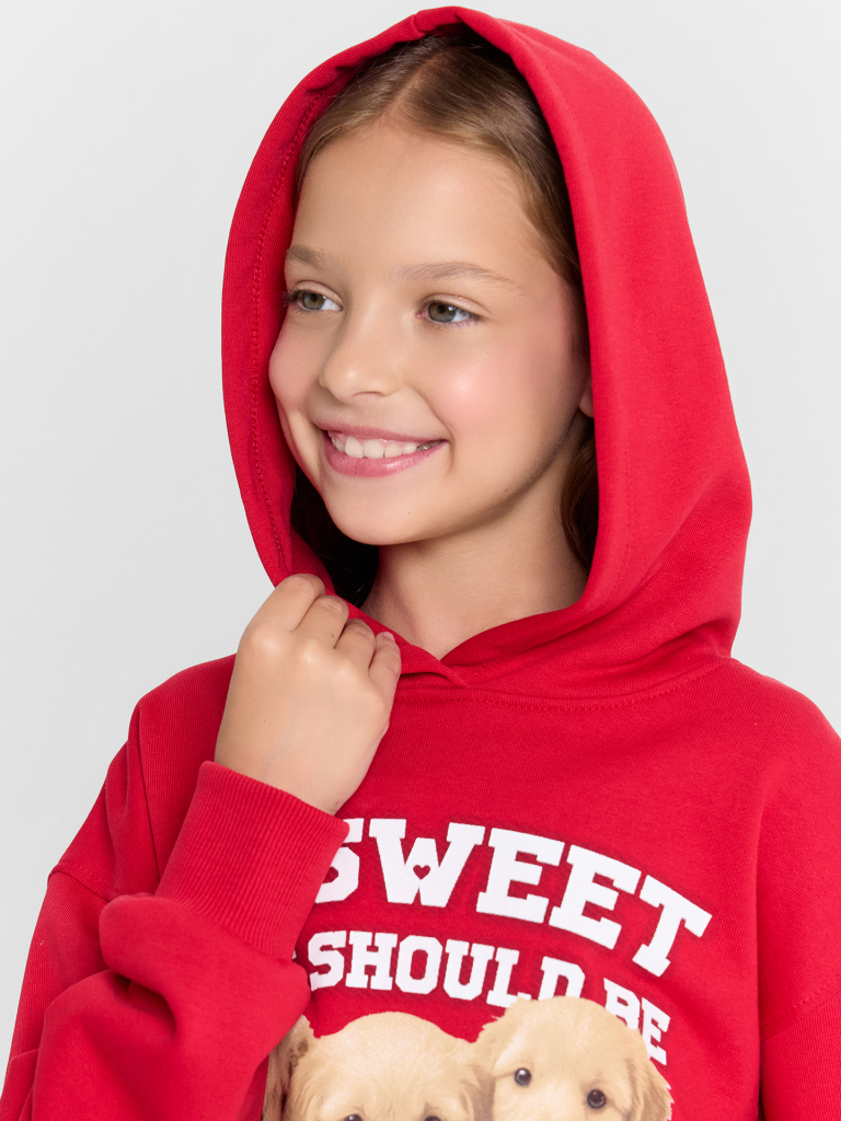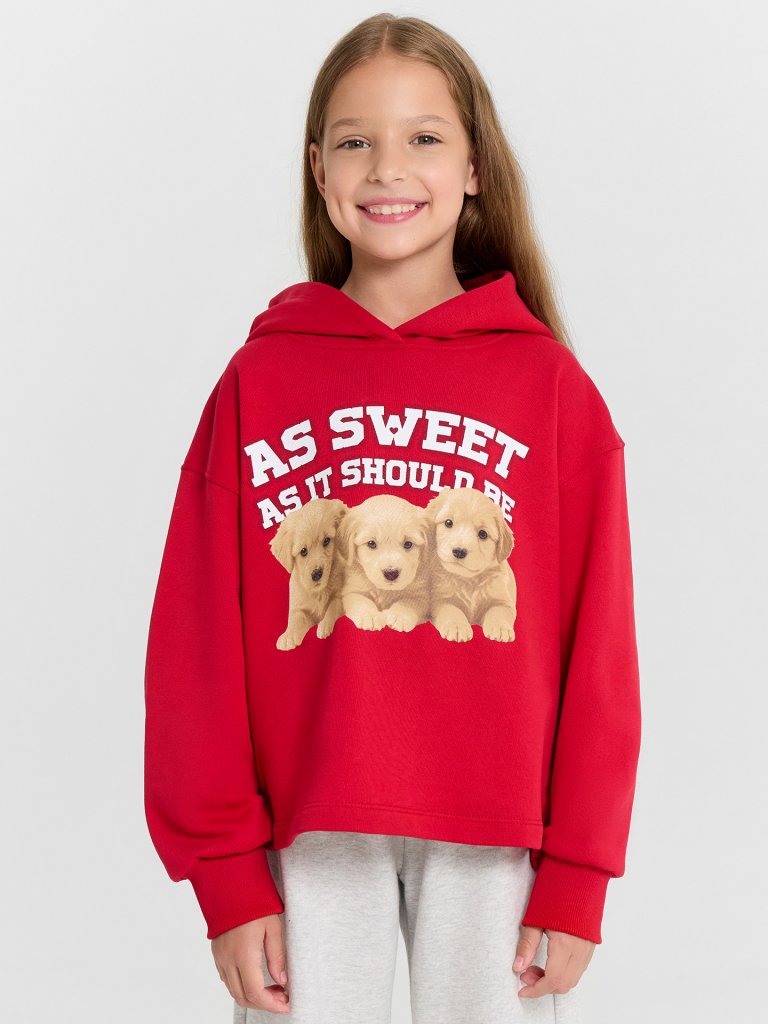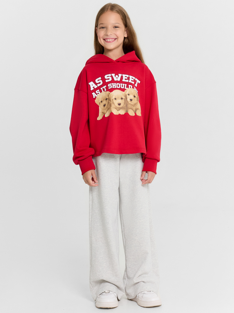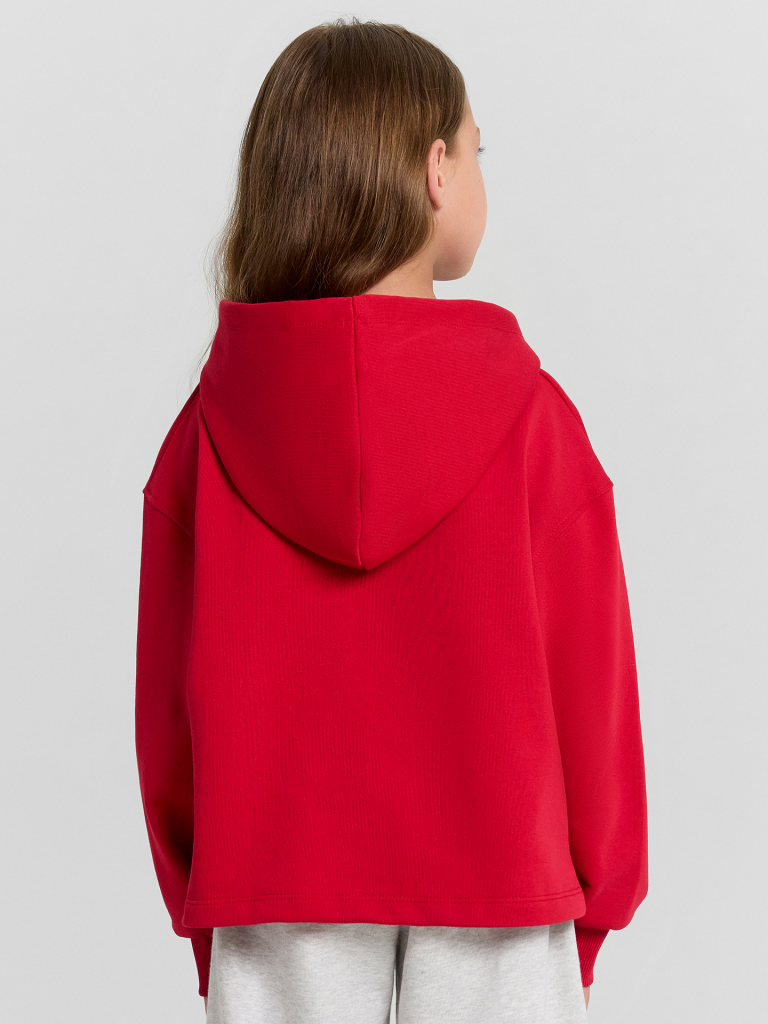 Худи укороченный прямого силуэта с капюшоном. Рукава длинные, втачные.
