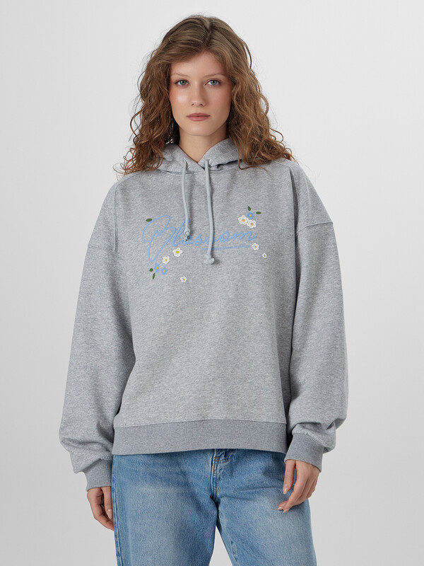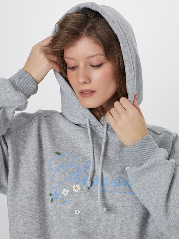 Серое худи с надписью «Цвести» — это уютная модель для повседневной носки. Худи свободного кроя выполнено из мягкого трёхниточного футера с начесом, который сохраняет тепло и обеспечивает комфорт в прохладную погоду. Капюшон со шнурком и спущенная линия плеча создают расслабленный современный силуэт.