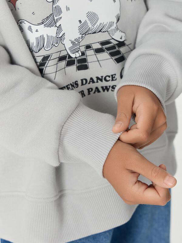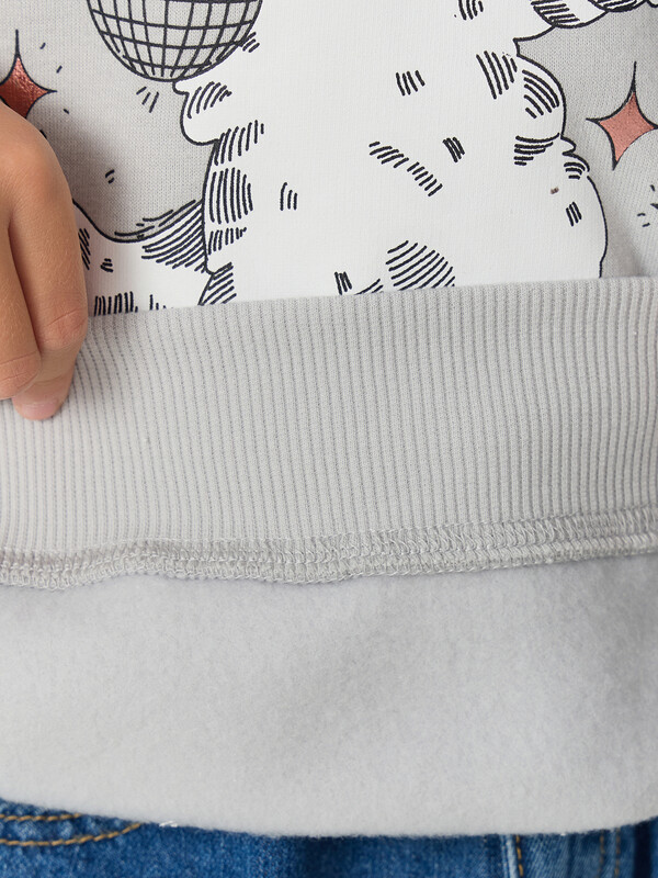 Внутренний мягкий ворс этого материала хорошо сохраняет тепло и дарит комфорт в прохладные дни, обеспечивая идеальный микроклимат для активного ребенка. Свободный крой со спущенной линией плеча не сковывает движений во время игр и активного отдыха.