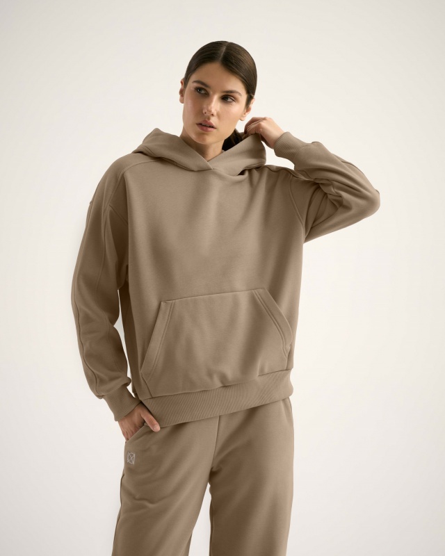 Худи свободного кроя с капюшоном, спущенное плечо, карман кенгуру.