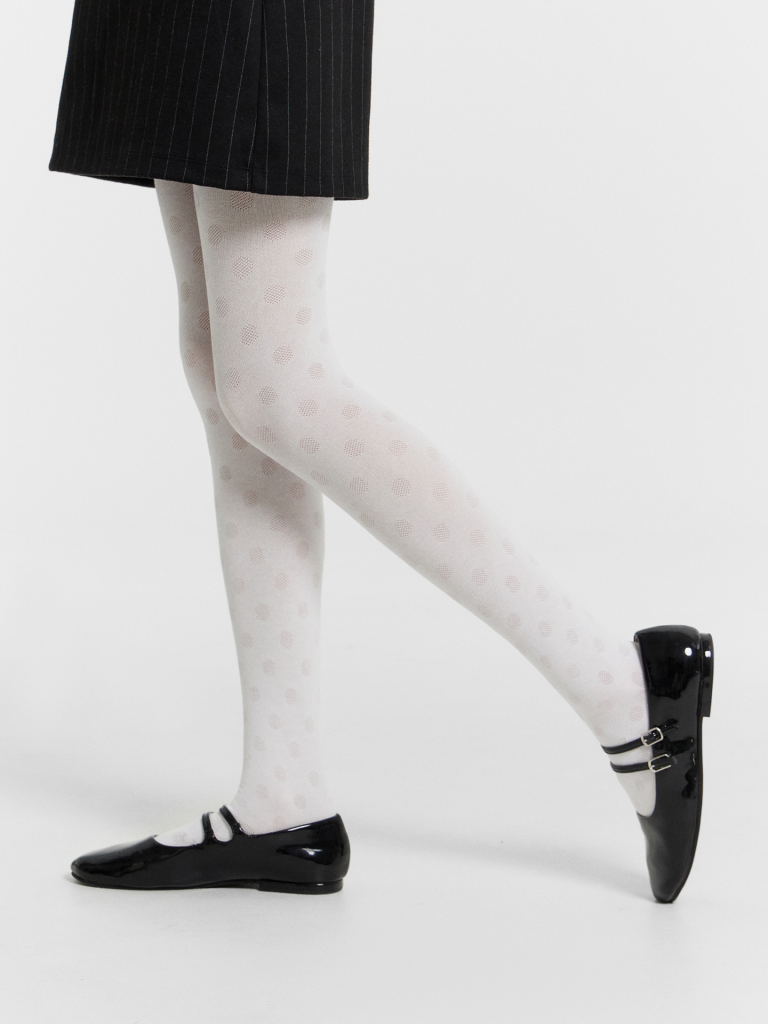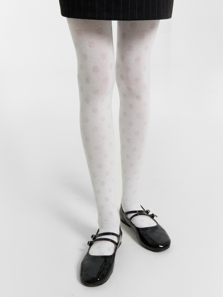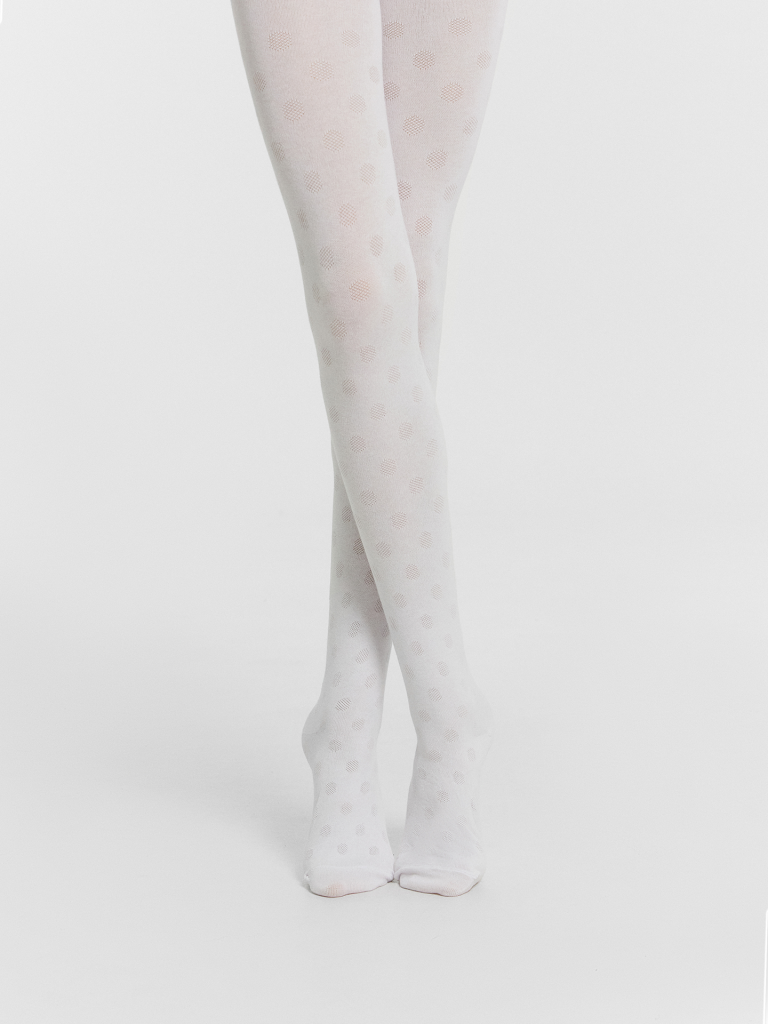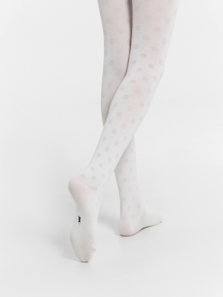 Рис.3219 Колготки гладкие с рисунком в виде крупного горошка, выполненым перекидным переплетением.
