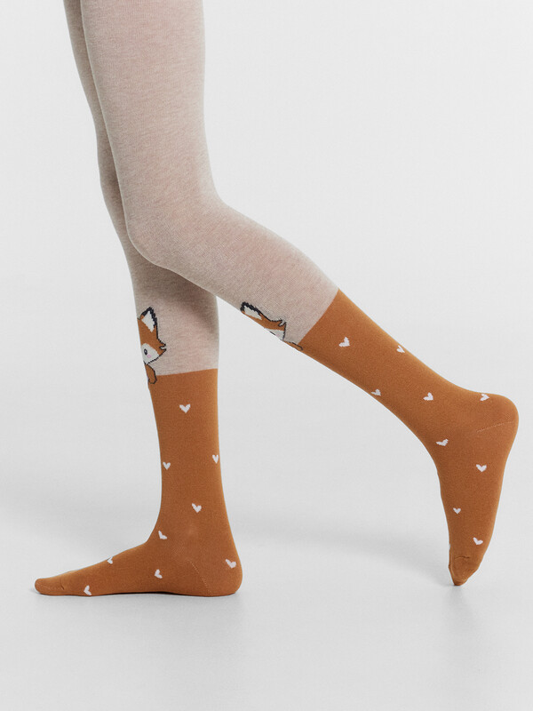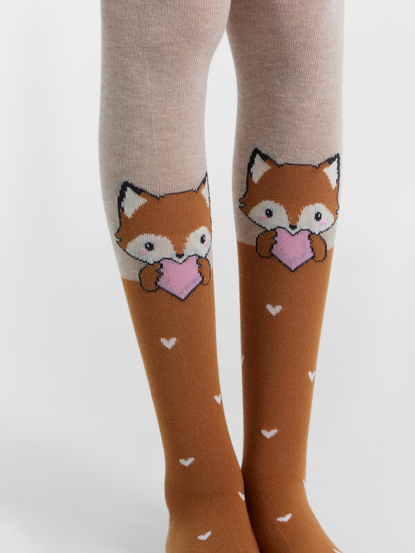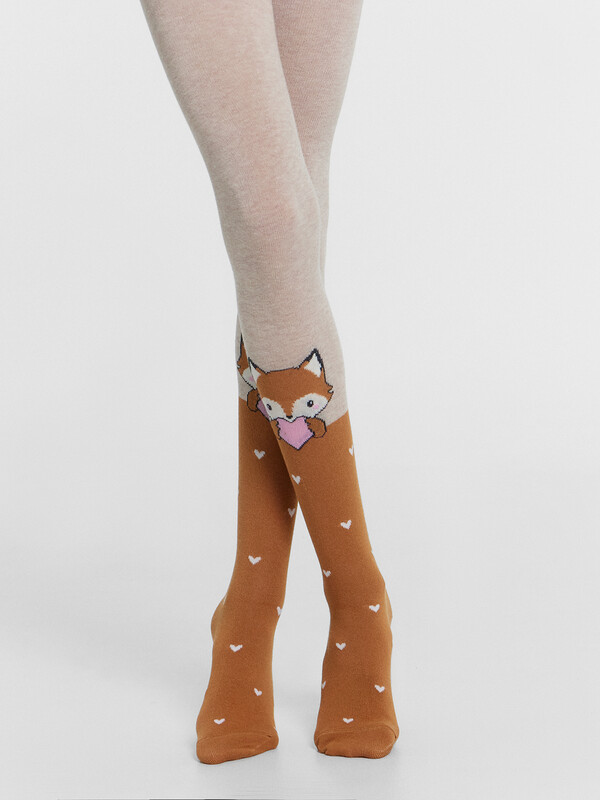 Рис.2949 Гладкие колготки с рисунком в виде лисички.